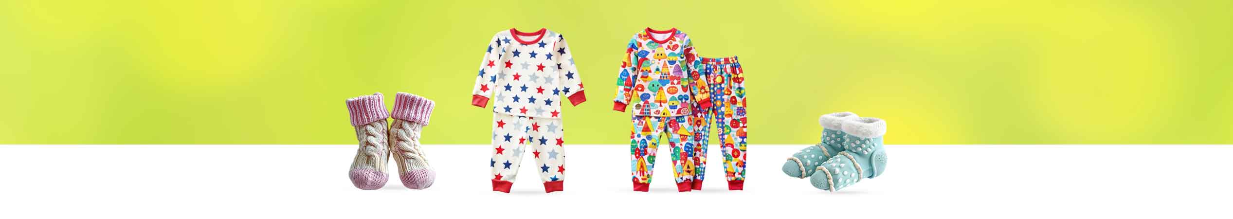 جوراب و لباس خواب، اقلامی نرم و ایمن برای محافظت و راحتی کودک؛ طراحی با پارچههای لطیف و ضد حساسیت برای خواب آرام و روزی راحت.