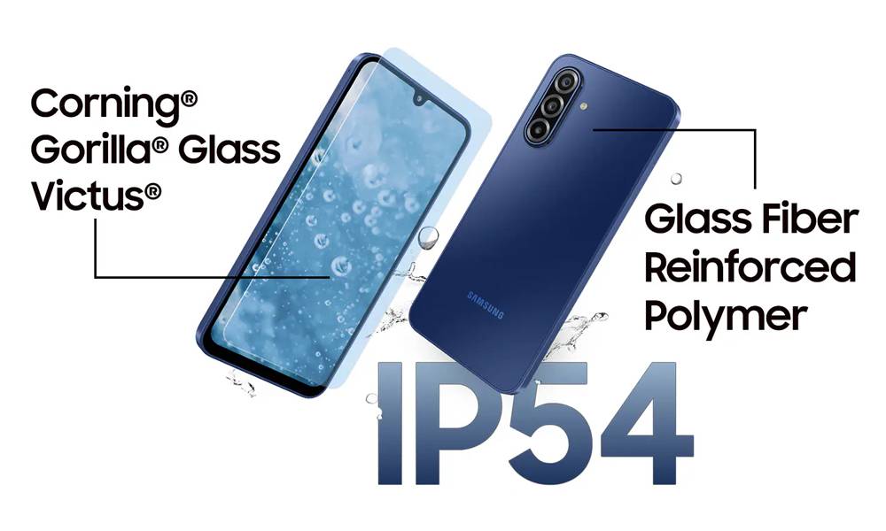 Galaxy A17 با ابعاد 164.4 در 77.9 در 7.5 میلیمتر و وزن 190 گرم، گوشیای باریک و نسبتاً خوشدست محسوب میشود. در ساخت بدنه از شیشه محافظ گوریلا گلس Victus+ در قاب جلو استفاده شده، در حالی که قاب پشتی و فریم از جنس پلاستیک هستند. این انتخاب باعث شده هم وزن گوشی کنترل شود و هم قیمت آن اقتصادی بماند. گواهی IP54 نشان میدهد که A17 در برابر گردوغبار و پاشش آب مقاومت دارد، بنابراین میتواند در استفاده روزمره خیال شما را راحت کند. طراحی دستگاه مینیمال است و در سه رنگ مشکی، خاکستری و آبی روشن عرضه میشود که برای سلیقههای مختلف انتخابهای مناسبی هستند.