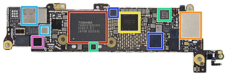 | سایر قابلیتها | مجهز به پوششی مقاوم در برابر جذب عرق و اثر انگشت (Oleophobic Coating) قابلیت دریافت تا 10 لمس همزمان قابلیت حذف صداهای مزاحم هنگام مکالمه با استفاده از میکروفون دوم (Active Noise Cancellation With Dedicated Mic) مجهز به دستیار صوتی اپل Siri مجهز به سرویسهای ابری iCloud پشتیبانی از سیستم یکپارچه ذخیرهسازی رمز عبور (iCloud Keychain) دارای خروجی TV-out از طریق پورت Lightning |