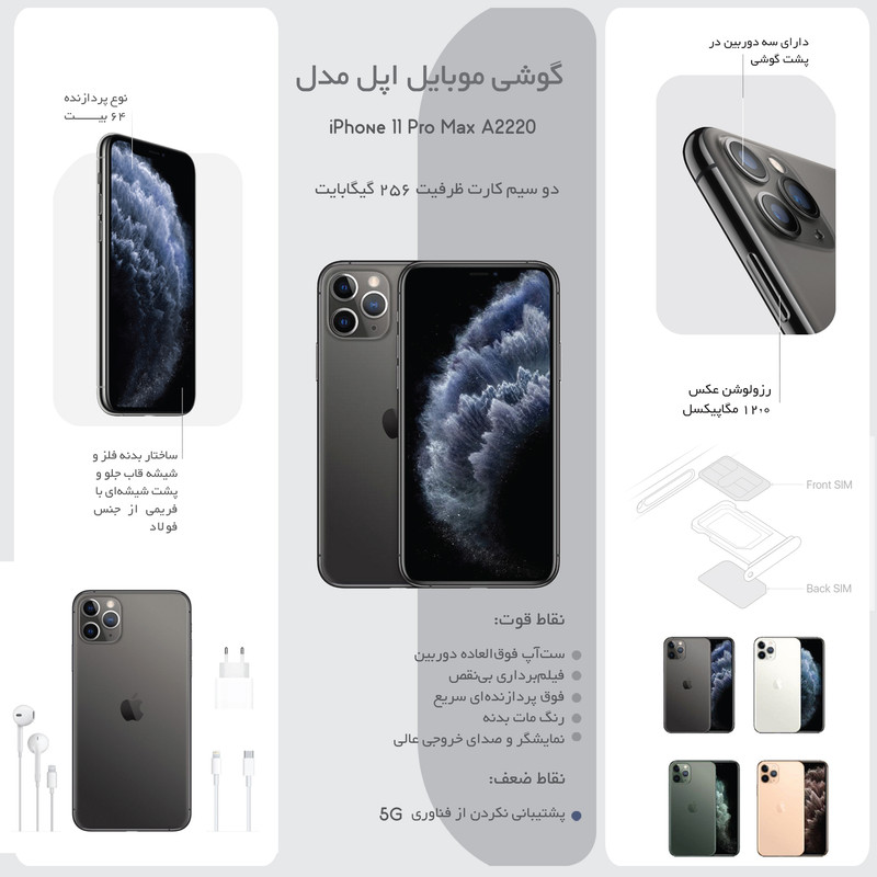 گوشی موبایل اپل مدل iPhone 11 Pro Max A2220 دو سیم کارت ظرفیت 64 گیگابایت