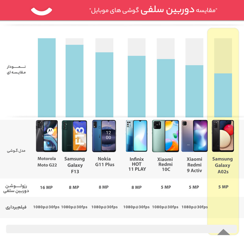 | مشخصات دوربین سلفی | دارای لنز از نوع عریض (Wide) با رزولوشن 5 مگاپیکسل، دریچهی دیافراگم f/2.2 |