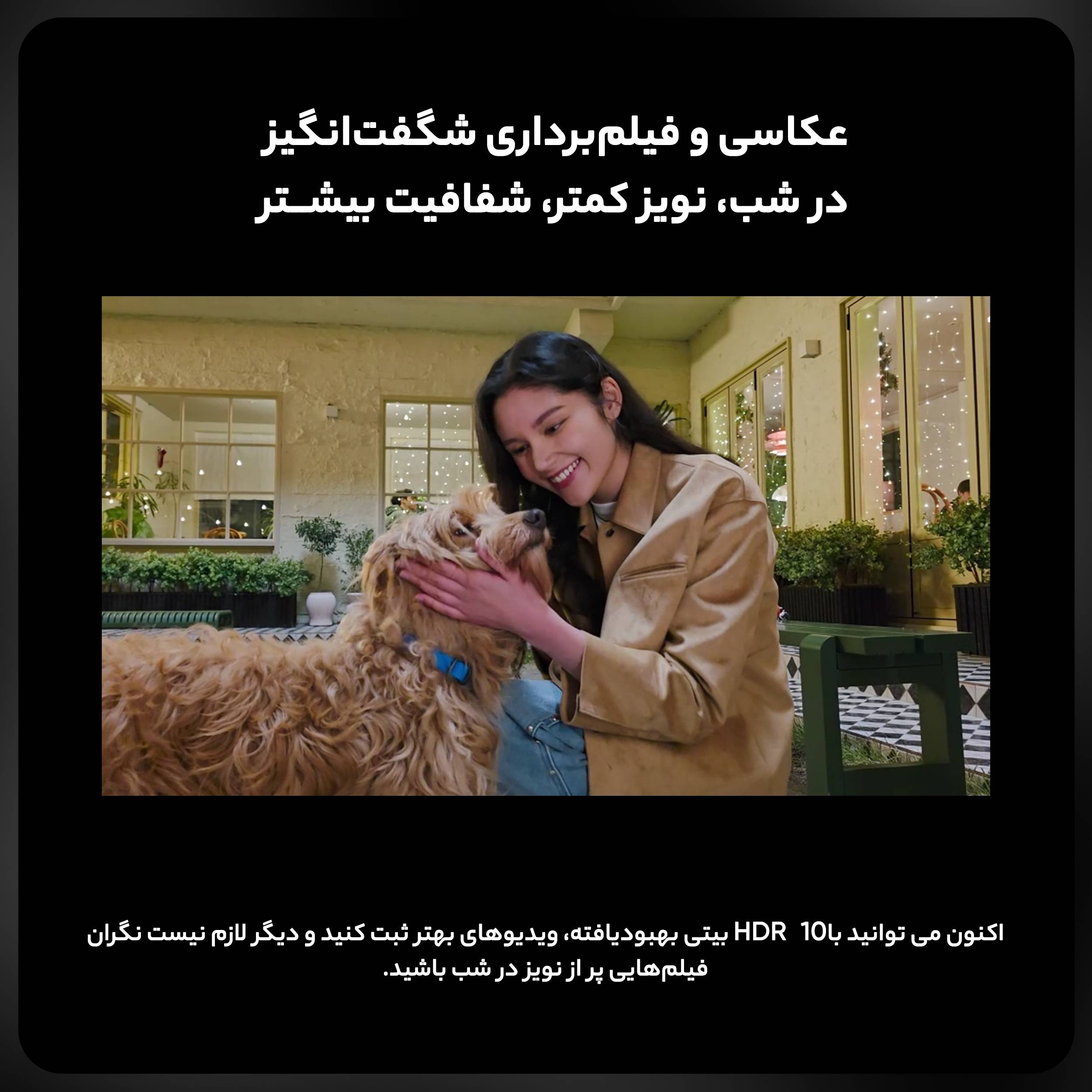 دوربین سلفی 12 مگاپیکسلی نیز برای گرفتن تصاویر پرتره و ویدیوهای با کیفیت بالا بسیار مناسب است و از قابلیت HDR10+ پشتیبانی میکند.