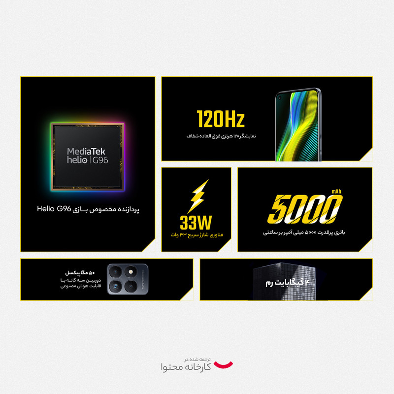 | سایر قابلیتها | رابط کاربری Realme UI 2.0 / اندروید 11 قابل ارتقاء |