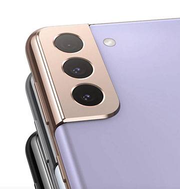 دوربینهای این گوشی زیاد با نسل قبلی تفاوت فاحشی ندارد اما در این مدل دیگر از سنسور سه بعدی ToF خبری نیست. گوشی گلکسی S21 به دلیل استفاده از دوربین ۶۴ مگاپیکسلی، قابلیت فیلمبرداری 8k نیز دارد که این مورد را میتوان یکی از امتیازات ویژه این گوشی دانست که میتوان پس از فیلمبرداری، عکسهای بسیار باکیفیتی نیز از بین فیلم استخراج کرد. امکان فیلمبرداری super steady نیز از دیگر ویژگیهای این گوشی محسوب میشود. به عنوان مثال در هنگام ورزش میخواهید فیلمبرداری هم داشته باشید. به دلیل لرزشهای بسیار زیاد، ممکن است فیلم کیفیت مطلوب را نداشته باشد اما با استفاده از قابلیت super steady دیگر نیازی نیست نگران این موارد باشید. این مدل دارای ۸ گیگابایت حافظه رم بوده و از حافظه داخلی 128 گیگابایتی بهره میبرد. گلکسی S21 در بازارهای جهانی ازجمله ایران با تراشهی Exynos 2100 سامسونگ و در برخی بازارها با جدیدترین تراشهی کوالکام موسوم به Snapdragon 888 فروخته میشوند. برخلاف نسل گذشته، کهکشانیهای جدید سامسونگ فقط در نسخهی 5G عرضه میشوند.