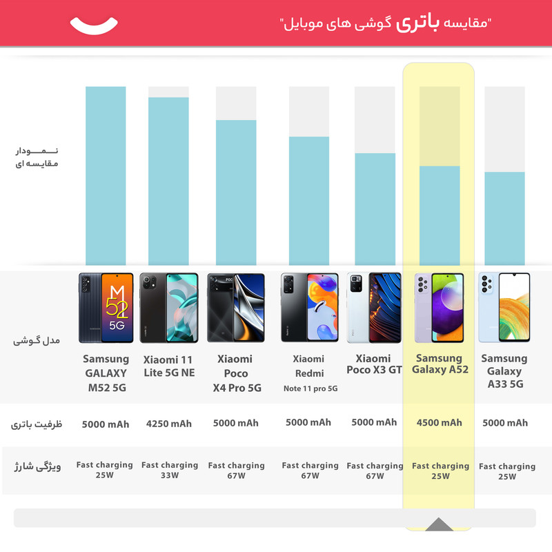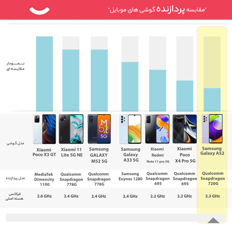 گوشیهای سری A شرکت سامسونگ از گوشیهای میانرده این شرکت هستند. در واقع سامسونگ با تولید سری گوشیهای A، تولیدکنندگان چینی مانند هوآوی و شیائومی را در گوشیهای میانرده به مبارزه طلبیده است. سامسونگ با به کارگیری صفحهنمایشهای Super AMOLED در این سری از گوشیهای خود، رقیبان خود را به چالش جدی کشیده است و باعث شده تا کاربران با صرف هزینهای که برای یک گوشی میانرده پرداخت میکنند صاحب گوشی با نمایشگر فوقالعاده شوند. سامسونگ رده Aهای خود را در اصل برای کسانی ساخته است که میخواهند گوشی داشته باشند که بتوانند با آن کارهای متفاوتی انجام دهند ولی هزینه کمتری کنند. سامسونگ این بار گوشی A52 را راهی بازار کرده است. انتظار میرود سامسونگ سری A رضایتمندی بیشتری را کسب کند. تمامی کسانی که از A51 استفاده کردند رضایتمندی 98 درصدی از آن را داشتند و این بار سامسونگ میخواهد با گوشی موبایل سامسونگ مدل A52 رضایتمندی 99 تا 100درصد را کسب کند. البته مواردی درگوشی A52 با بهبود همراه است؛ ازاینرو میتوان گفت گوشی A52 نسخه ارتقاء یافته از گوشی A51 است. حفره کوچکتر روی صفحهنمایش، رزولوشن بیشتر و چیپست جدیدتر نسبت به گوشی A51 داشته است. شرکت سامسونگ با ساخت گوشی موبایل مدل A52 بار دیگر سعی کرده است تا سهم بازار خود را در گوشیهای میانرده حفظ کند.