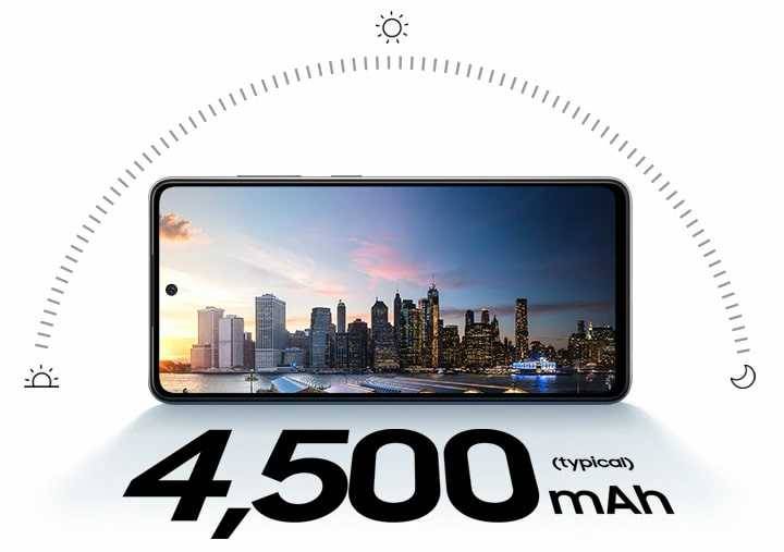 گوشی موبایل سامسونگ مدل A52 SM-A525F/DS دو سیمکارت ظرفیت 256 گیگابایت و رم 6 گیگابایت هم از باتری پرقدرت 4500 میلیآمپرساعت استفاده کرده است. این باتری جنس لیتیومپلیمر بوده که در مقایسه با گوشی موبایل A51 که از باتری با 4000 میلیآمپرساعت با جنس لیتیومیونی است، از ظرفیت بیشتری بهره برده و کیفیت و طولعمر بیشتری دارد.