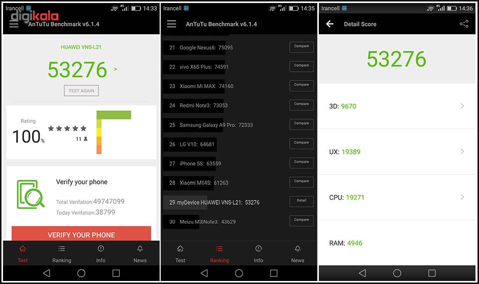 | سایر قابلیتها | قابلیت دریافت تا 10 لمس همزمان قابلیت حذف صداهای مزاحم هنگام مکالمه با استفاده از میکروفون دوم (Active Noise Cancellation With Dedicated Mic) مجهز به رابط کاربری Emotion UI 4.1 |