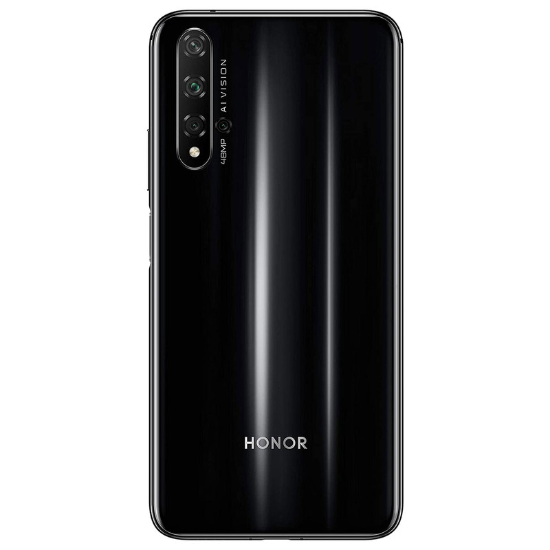 گوشی Honor 20 هم مانند Honor 20 Pro از یک دوربین چهارگانه بهره می برد که البته ضعف هایی را نسبت به دوربین نسخه پرو دارد. لنز اصلی دوربین، سنسور IMX 586 سونی است که در گوشی Honor View 20 و Honor 20 Pro هم مور داستفاده قرار گرفته است. این در حالی است که این لنز در Honor 20 Proبا لرزشگیر تصویر اپتیکال و دریچه دیافراگم 1/4 همراه شده است. این سنسور از فناوری Quad-Bayer استفاده می کند ؛ با استفاده از این فناوری از 4 پیکسل 0.8 میکرومتری مجاور ، یک پیکسل 1.6 میکرومتری را تشکیل می دهند که نتیجه آن ثبت تصاویر شارپ، با نویز کمتر و عملکرد بهتر در شرایط نور کم است. استفاده از سنسور عمق برای عکاسیهای پرتره کاربرد دارد که باعث میشود تصویر پشت سوژه محو (Bukeh)به نظر برسد. همچنین دوربین این گوشی میتواند مناظر مختلف را تشخیص دهد و تصاویر را متناسب با آنها بهبود دهد.