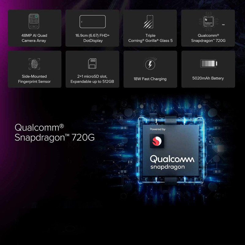 | تراشه | Qualcomm SM7125 Snapdragon 720G (8 nm) Chipset |