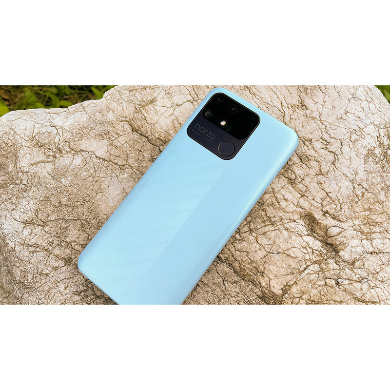 در قسمت پشتی اما طراحی جالب و متفاوتی برای قرارگیری سنسورهای دوربین در نظر گرفته شده است. سه سنسور دوربین در قسمت پشتی قرار گرفته است. سنسور حسگر اثر انگشت هم بهعنوان یکی از قابلیتهای امنیتی بسیار کاربردی هم در است قسمت قرار گرفته است. با توجه به تستهای انجام شده، سنسور فیزیکی حسگر اثر انگشت این گوشی، عملکرد خوب و سریعی را در قفل گشتای صفحهنمایش داشته است. نکته جالب توجه، وزن نهچندان سبک ۲۰۷ گرمی این گوشی است. اما اصلا نگران وزن در نظر گرفته شده برای این گوشی هوشمند میانرده نباشید، زیرا نهتنها در استفاده طولانی مدت خستگی برای دست نخواهد داشت، بلکه HANDS_ON جذابش سبب شده تا احساس افتادن در حین استفاده هم تا میزان قابل توجهی کاهش پیدا کند. اگر بخواهیم در بخش طراحی جمعبندی داشته باشیم، باید بگوییم که Narzo 50A بهعنوان یک گوشی هوشمند میانرده، به طراحی مناسبی مجهز شده است که البته نحوه طراحی قرار گیری سنسورهای دوربین پشتی متفاوت با گوشیهای هوشمند میانرده موجود در بازار است.