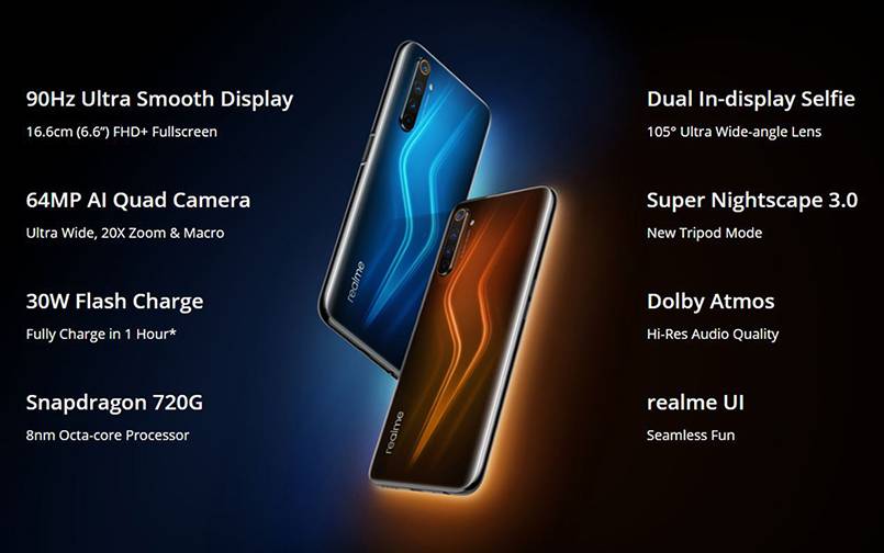 اغلب کاربران هنگام خرید گوشی هوشمند به پردازنده، کیفیت صفحه نمایش و دوربین، ظرفیت باتری، حافظهی دستگاه و میزان رم ان توجه میکنند. در واقع اگر شما جزو کاربرانی باشید که انتظاراتی فراتز از کاربری عمومی و روزمره از موبایل نداشته باشید توجه به همین چند مورد برای خرید گوشی موبایل کافی خواهد بود تا بهترین مورد را مطابق انتظارات و نیاز خود تهیه کنید. ریلمی Pro RMX2063 6 از چیپست اسنپ دراگون 720 جی (Snapdragon 720G) بهره میبرد که این مورد را میتوان به عنوان یکی از مهمترین نقاظ قوت این محصول عنوان کرد. این تراشه عملکرد بسیار بالایی در اجرای گرافیک با کیفیت و انجام امور روزمره دارد. در واقع استفاده از پردازندهی گرافیکی Adreno 618 در کنار پردازنده مرکزی Kryo 465 Gold و Kryo 465 Silver با فرکانس 1.8 و 2.3 گیگاهرتزی سرعت و قدرت کارایی بالایی را برای این تلفن همراه به ارمغان آورده و تمام انتظار کاربر از یک گوشی میان رده را برطرف خواهد کرد. ریلمی برای ساخت این مدل از موبایلهای خود حافظه ی داخلی 128 گیگابایتی و رم 8 گیگابایتی را در نظر گرفته است. بنابراین هنگام استفاده از آن تا حد زیادی نگران کمبود حافظه نخواهید بود. این روزها در بسیاری از تلفنهای همراه، درگاه سیم کارت دوم با کارت حافظهی گوشی مشترک است بنابراین برای قرار دادن حافظهی جانبی لازم است سیم کارت دوم را از دستگاه خارج کنید اما در این مدل از موبایلهای ریلمی برای کارت حافظه جانبی با استاندارد UFS 2.1 درگاه اختصاصی کارت حافظه با پشتیبانی از microSDXC در نظر گرفته شده است. این گوشی دارای صفحهنمایش بزرگی است که کار کردن با آن برای کاربر راحت خواهد بود. ریلمی مدل Pro RMX2063 6 از صفحهنمایش 6.6 اینچی با رزولوشن 1080*2400 پیکسل، نرخ به روزرسانی 90 هرتزی و فناوری IPS که با محافظ گوریلا گلس 5 همراه شده است بهره میبرد. علیرغم آنکه فناوری IPS رنگهای زندهتری را برای شما به نمایش میگذارد میتوان گفت به عنوان یک تکنولوژی قدیمی محسوب میشود و در برابر صفحه نمایشهایی با تکنولوژی آمولد ضعیفتر عمل خواهد کرد. با اینحال این صفحه نمایش با تراکم پیکسلی 399 پیکسل در هر اینچ، کیفیت مرغوبی را برای تماشای ویدیو، گیمینگ و کاربری عمومی و وقت گذراندن در اینترنت، برای شما فراهم خواهد کرد. نسبت صفحه نمایش این مدل به بدنه 84.7 است که زیاد راضیکننده نیست ولی همچنان برای یک گوشی میانرده مناسب است.