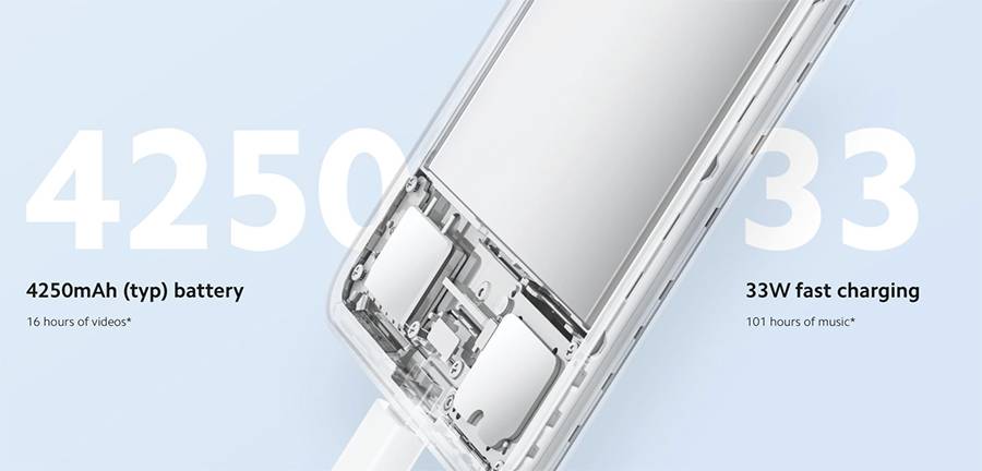 | مشخصات باتری | باتری لیتیوم-پلیمر با ظرفیت 4250 میلیآمپرساعت قابلیت شارژ سریع باتری با توان 33 وات |