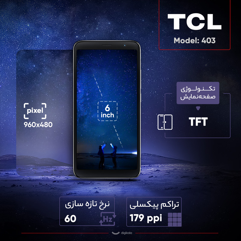 اگر به دنبال خرید گوشی هوشمند میانرده ارزان قیمتی هستید، برند TCL در این بخش محصولات متنوعی را روانه بازار کرده است که مدل 403 یکی از این گوشیهای میانرده ارزان قیمت است. در نمای روبهرویی این گوشی به صفحهنمایش با ابعاد 6.0 اینچ و رزولوشن 480×960 پیکسل از نوع TFT مجهز شده است که کیفیت تصویر قابل قبولی را ارائه میکند. در قسمت پشتی هم تنها یک سنسور دوربین 8 مگاپیکسل عریض (اصلی) برای این گوشی در نظر گرفته شده که امکان ثبت تصاویر باکیفیتی را در نور روز به شما میدهد. برای دوربین سلفی هم سنسور با رزولوشن 5 مگاپیکسل در نظر گرفته شده که برای ثبت تصاویر قابل قبول در نور روز میتوانید روی آن حساب باز کنید و از طرفی عملکرد بسیار خوبی در تماسهای تصویری دارد. حضور پردازنده هشت هستهای هلیو A22 شرکت مدیاتک هم سبب شده تا این گوشی در اجرای بازیهای نهچندان سنگین و برنامههای کاربردی روزمره، عملکرد بسیار خوبی داشته باشد. باتری 3000 میلیآمپرساعتی هم به ازای هر بار شارژ صد درصدی در حالت استفاده معمولی، طول عمر مفید (زمان آماده بهکار) یک روز را ارائه میکند. در مجموع باید بگوییم که اگر به دنبال خرید گوشی میانرده ارزان قیمتی هستید که در فعالیتهای روزمره عملکرد بسیار خوبی داشته باشد، تی سی ال 403 میتواند یکی از بهترین انتخابهای ممکن برای شما باشد.