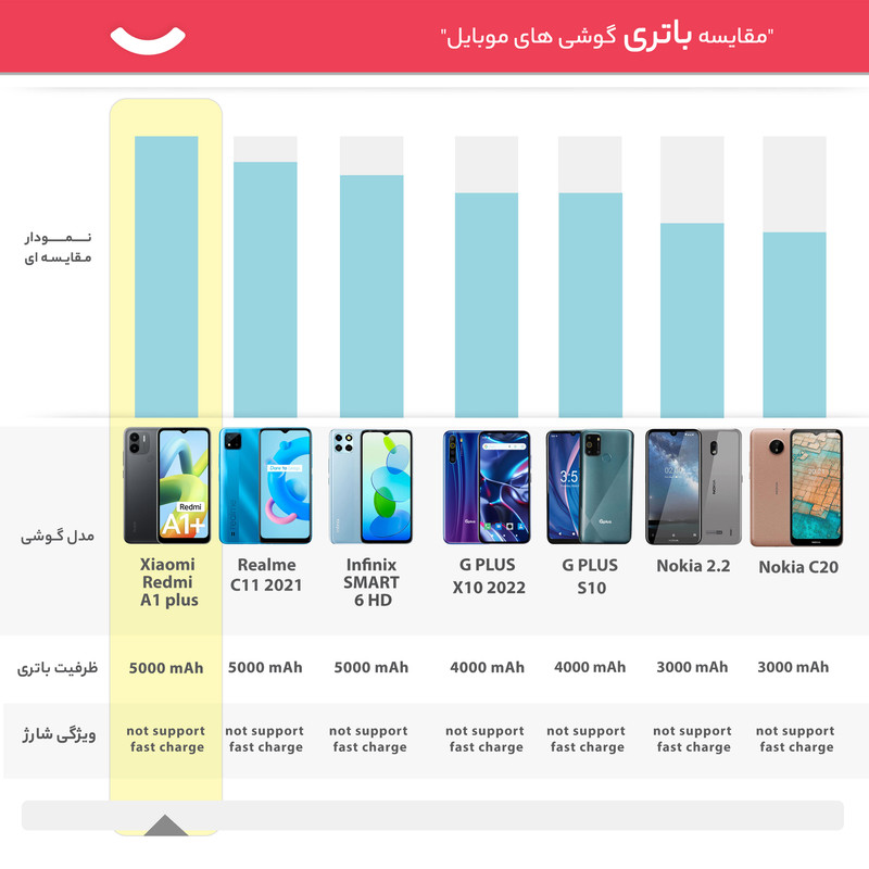 بسیاری از کاربران به دنبال خرید گوشیهای هوشمندی هستند که در کنار بهره بردن از مشخصات فنی مناسب، قیمت به نسبت ارزان و مقرون بهصرفهای داشته باشند. در بین گوشیهای هوشمند سری Redmi شرکت شیائومی هم شاهد رونمایی این چنین گوشیهایی بودیم. گوشی موبایل شیائومی مدل Redmi A1 plus دو سیم کارت ظرفیت 32 گیگابایت و رم 2 گیگابایت هم به نسبت بسیاری از گوشیهای موجود در بازار قیمت ارازانتری را دارد و با توجه به مشخصات فنی در نظر گرفته شده، توانایی ارائه عملکرد کاملا قابل قبولی در استفاده روزمره دارد. این گوشی به صفحهنمایش با ابعاد 6.52 اینچ و رزولوشن 720×1600 پیکسل از نوع IPS با توانایی نمایش 269 پیکسل در هر اینچ و حداکثر روشنایی 400 نیت (شمع در متر مربع) را دارد. بریدگی قطرهای شکل ناچ واتردراپ در قسمت بالایی و مرکزی صفحهنمایش، سنسور دوربین سلفی با رزولوشن 5 مگاپیکسل را در خود جای داده و در قسمت پشتی هم یک سنسور با رزولوشن 8 مگاپیکسل از نوع عریض (wide) در کنار سنسور 0.08 مگاپیکسل برای این گوشی میانرده اقتصادی در نظر گرفته شده است. در بخش مشخصات سختافزاری هم حضور پردازنده هلیو A22 شرکت مدیاتک سبب شده تا شیائومی Redmi A1 plus توانایی ارائه عملکرد خوبی برای اجرای بازیهای نهچندان سنگین و نرمافزارهای پرکاربرد را داشته باشد. انتخاب بسیار خوب باتری با میزان ظرفیت 5000 میلیآمپرساعت هم سبب شده تا شیائومی Redmi A1 plus به ازای هر بار شارژ صد درصدی، توانایی ارائه طول عمر مفید (زمان مفید) نزدیک به دو روز را در استفاده معمولی داشته باشد. سیستم عامل پایه Android 12 برای شيائومي ردمی در نظر گرفته شده است. در مجموع باید بگوییم که اگر به دنبال خرید گوشی میانردهای هستید که به نسبت بسیاری از گوشیهای دیگر قیمت ارزانتری داشته باشد، شیائومی Redmi A1 plus میتواند یکی از بهترین انتخابهای ممکن برای شما باشد.