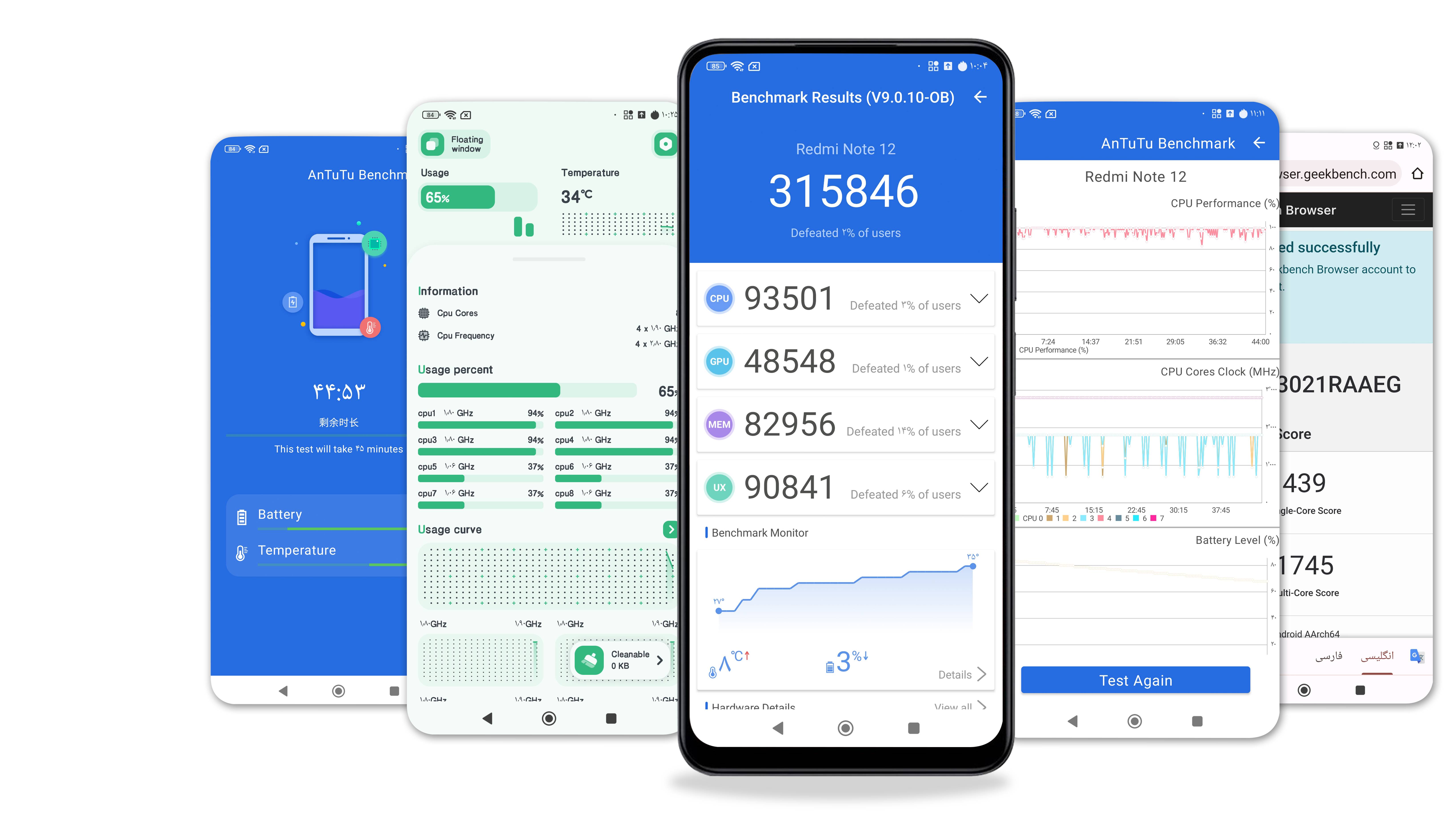 در بخش پردازنده، تراشه Snapdragon 685 را داریم که از هشت هسته تشکیل شده است که چهار هسته با فرکانس ۱.۹ و چهار هسته با فرکانس مرکزی ۲.۸ گیگاهرتز کار میکنند. همچنین از پردازنده گرافیکی Aderno 610 در این گوشی استفاده شده است. میتوان گفت این گوشی در کارهای روزمره و معمول هیچ مشکلی نخواهد داشت و روان و بدون لگ کار میکند. با این وجود در بخش بنچمارک، ردمی نوت ۱۲ امتیاز بسیار بالایی ندارد که کمی تاثیر پردازنده گرافیکی آن و کمی نیز به دلیل اقتصادی بودن این گوشی است. البته هنوز هم میتوانید اکثر بازیها را روی این گوشی بازی کنید،