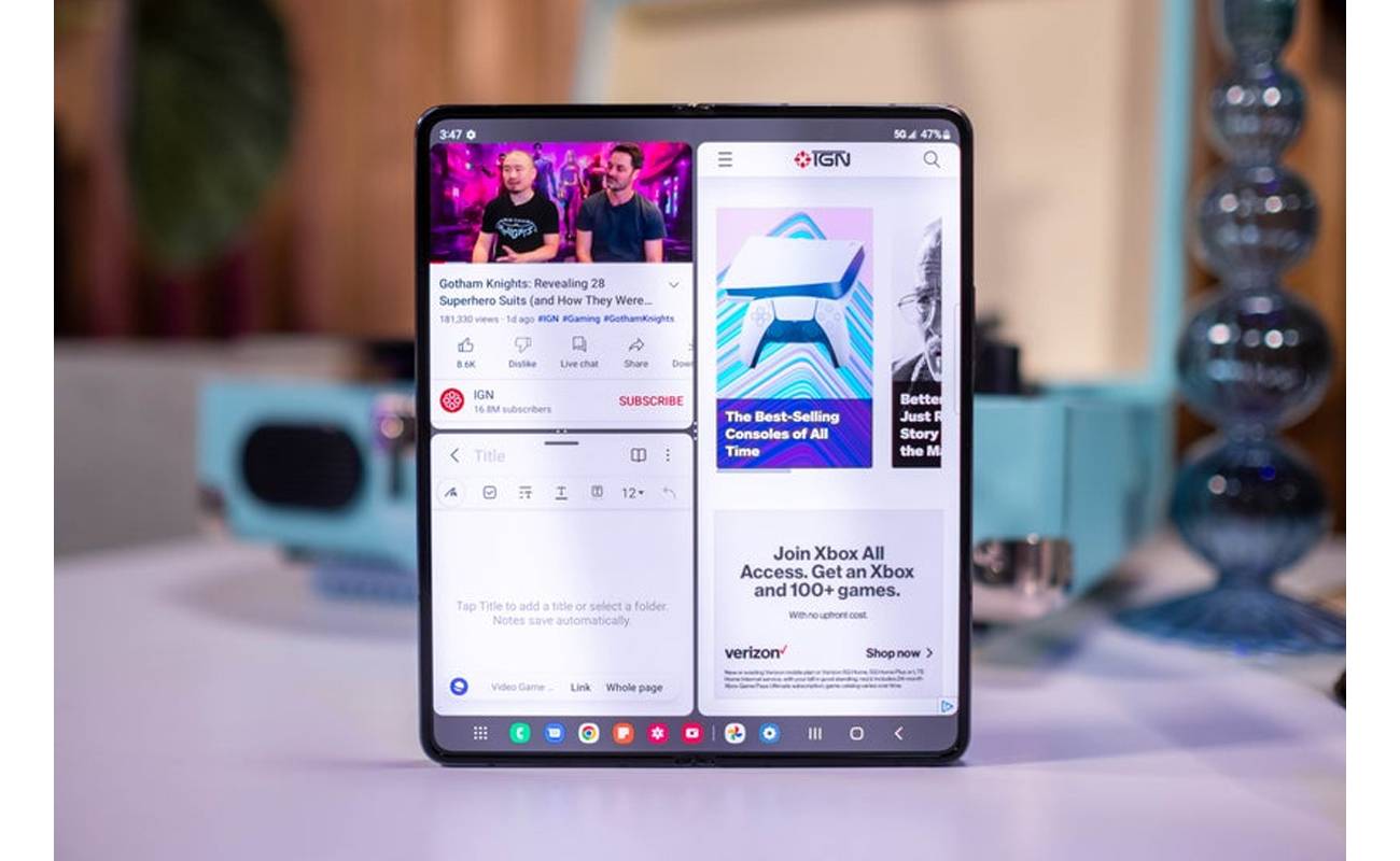 مکانیزم تاشو این گوشی از کیفیت ساخت بسیار بالایی برخوردار است و باز و بسته شدن آن به راحتی و روانی انجام میگیرد. این قابلیت تاشو علاوه بر ایجاد ظاهری جذاب، امکانات منحصربهفردی را نیز فراهم میآورد. بهعنوانمثال Flex Mode این گوشی، کاربران را قادر میسازد تا در زاویههای مختلف از گوشی استفاده کنند و از امکانات منحصربهفردی چون کنترل چنداپلیکیشن همزمان بهرهمند شوند.