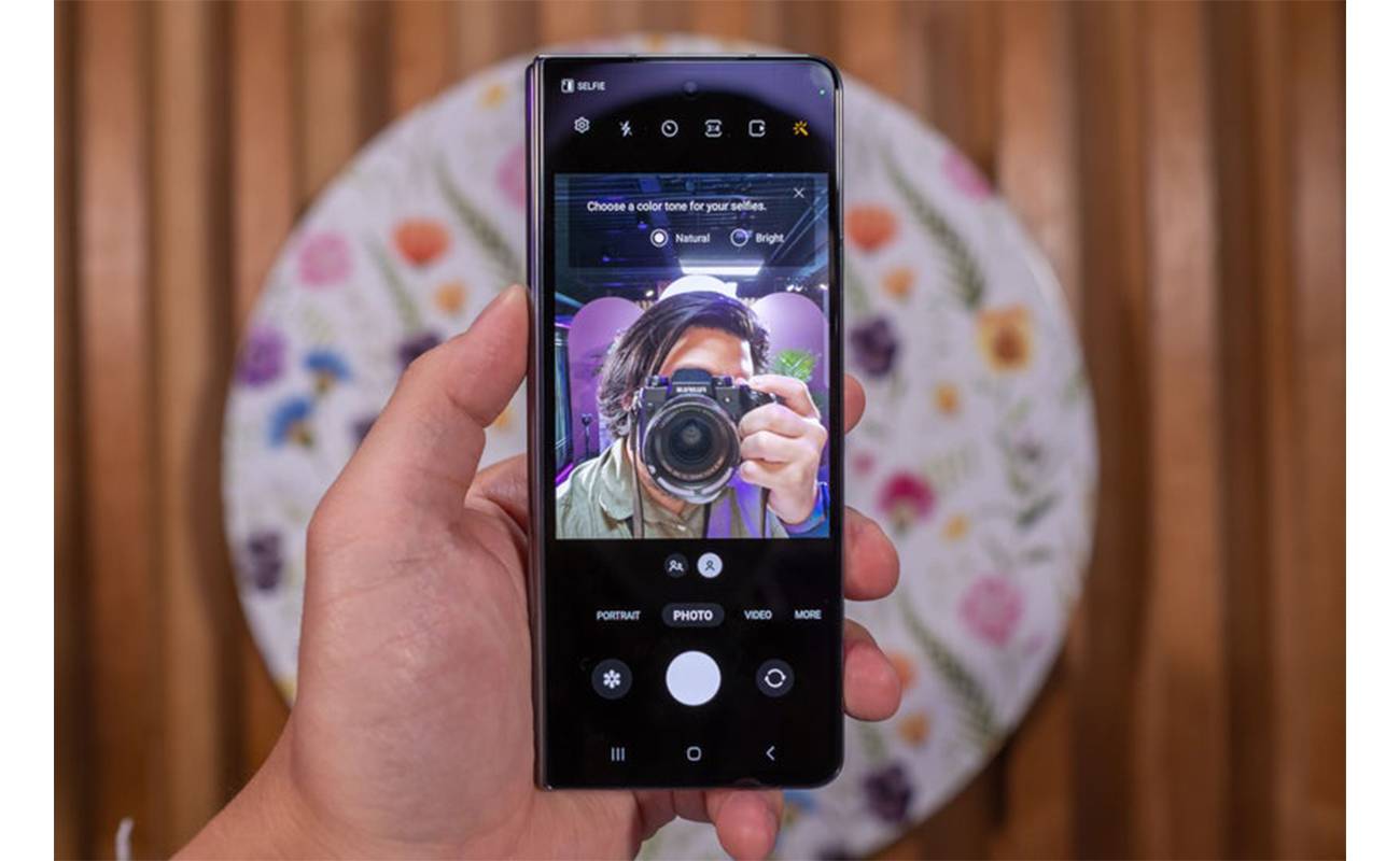 دوربین سلفی اصلی دارای یک حسگر 4 مگاپیکسلی است و زیر نمایشگر گوشی قرار گرفته است. طراحی این دوربین به شکلی است که به صورت کامل پشت صفحه نمایش قرار میگیرد و شاهد هیچگونه ناچ یا فرورفتگی داخل صفحه نمایش نخواهید بود. لنز این دوربین از نوع عریض است که دید گستردهتری را برای ثبت سلفیها فراهم میآورد. دریچه دیافراگم آن نیز f/1.8 است که به نور بیشتری دسترسی داشته و در شرایط نوری کم عملکرد مناسبی خواهد داشت.
