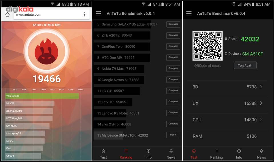 شاید در عدد، دوربینهای A5 جدید در مقایسه با نسل قبلی هیچ تفاوتی نکرده باشند؛ اما دوربین اصلی A5 با سنسوری جدید که حالا دریچهی دیافراگم f/1.9 دارد و طول فوکوس 3.7 میلیمتری، روانهی بازار شده است. سنسور CMOS این گوشی با یک فلش از نوع LED همراه شده تا در شرایط نوری بد هم بتواند تصاویر روشنی ثبت کند. رابط کاربری دوربین ساده طراحی شده و کاربر را سردرگم نمیکند. در رابط کاربری دوربین A5 جدید میتوانید از بین حالتهای عکاسی خودکار، عکاسی حرفهای، پاناروما، ثبت تصاویر متوالی، HDR و عکاسی در شب یکی را انتخاب کنید؛ البته سامسونگ سعی کرده در این بخش مثل سونی حالتهای بیشتر عکاسی را برای دانلود قرار دهد. حالتهای قابلدانلود در نوع خود جالب هستند. حالتهایی مثل عکاسی ورزشی، عکس همراه با صدا، عکاسی با افکت زیبایی، عکاسی سلفی با دوربین پشتی در منوی دانلود به چشم میخورند.