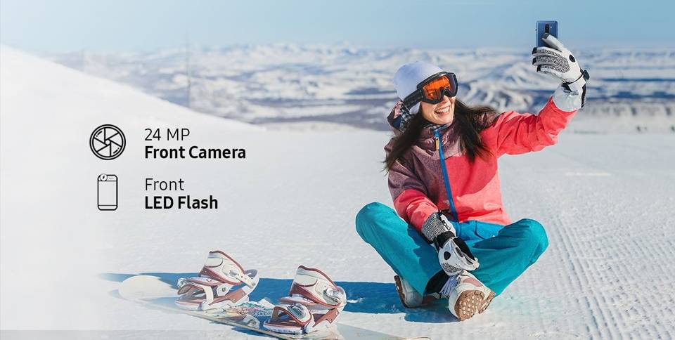 دوربین سلفی 24 مگاپیکسلی سلفی این گوشی عملکرد مطلوبی دارد و این گوشی را برای تهیه عکسهای شبکههای مجازی مناسب کرده است. این دوربین دارای حالت سلفی هم هست که البته این حالت چندان دلچسب نیست و پسزمینه را به شکل بدی محو میکند و از شارپ بودن عکس کم میکند. اما در عوض حالت خودکار عکاسی دوربین سلفی تصاویری شارپ و درخور با جزئیات فراوان برای کاربر به ارمغان میآورد. به لطف فلش LED در قسمت جلویی گوشی در سه سطح نوری مختلف، میتوانید میزان نور لازم برای گرفتن عکسهای سلفی را تأمین کنید.
