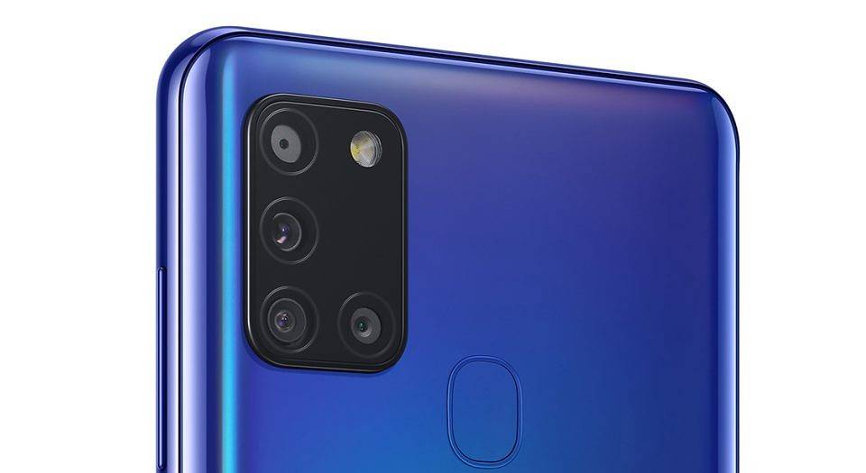 نحوه چینش لنزهای دوربین بر روی قاب پشتی A21S با کمی تغییر همراه شده است. چهار لنز دوربین به شکل یک «L» در کنار هم قرار گرفتهاند. این لنزها به همراه فلشLED در یک باکس مشکیرنگ تعبیه شدهاند که البته با کمی برآمدگی همراه شده است. در قسمت میانی قاب پشتی، حسگر اثر انگشت فیزیکی هم قرار گرفته است؛ اگرچه این روزها حسگر اثر انگشت فیزیکی، خیلی هم مدرن به نظر نمیرسد با این حال که از سرعت و دقت بسیار بالایی برخوردار است. کلیدهای کنترل میزان صدا و کلید پاور هر دو در یک سمت گوشی قرار گرفتهاند تا دسترسی به آن ها سادهتر باشد و در قسمت پایین گوشی، ورودی هدفون 3.5 میلیمتری و درگاه پورت USB-C قرار گرفته است.