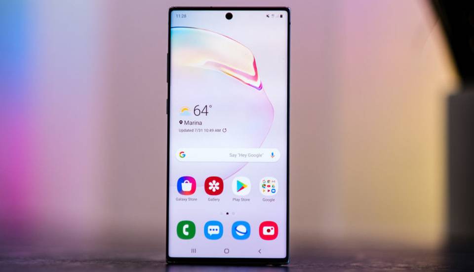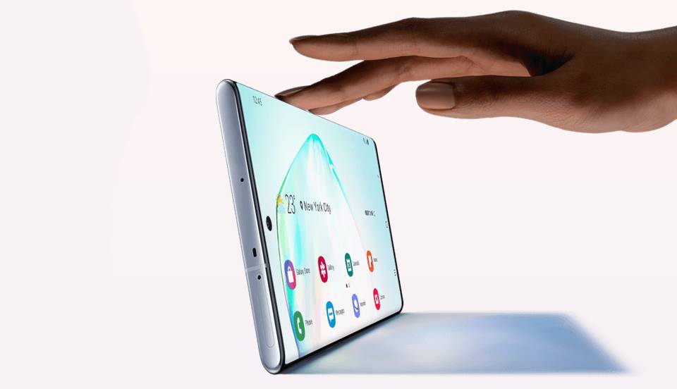 فناوری Super AMOLED به معنی تصاویر زنده و شفافیت خیرهکننده در کنار پشتیبانی از نمایش ویدئوهای HDR است. گلکسی نوت 10 پلاس از یک صفحه نمایش 6.8 اینچی بهره می برد، که تقریبا تمام قاب جلویی را پوشانده است. سامسونگ مدت ها است که برای پرچمداران خود از صفحه نمایشهایی با لبه های منحنی شکل استفاده می کند؛ کاری که با تولید S8 آغاز کرد و گوشی Note 10 Plus هم از این قاعده مستثنی نیست. تراز سفیدی مناسب، نور کافی برای دیدن محتویات زیر نورهای شدید، تراکم پیکسلی بالا که هنگام دیدن تصویر یا خواندن متن کمک میکند تا جزییات بیشتری را ببینید. سامسونگ موفق شده است برای این گوشی نسبت صفحهنمایش به بدنه 90.9 درصد را به دست آورد که برای یک گوشی امروزی هم میزان بسیار مطلوبی بهحساب میآید. تفاوت تماشای فیلم در این صفحهنمایش با باقی رقبا کاملا محسوس است و بیتردید سامسونگ در این زمینه برنده بیچون و چرا است.