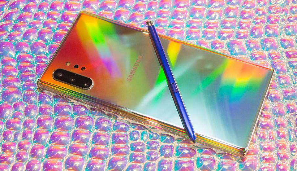 سری محصولات گلکسی نوت سامسونگ در سال 2011 عرضه شدند. این سری از محصولات که در اندازه بزرگ و با عنوان «فبلت» روانه بازار شدهاند به سرعت محبوبیت زیادی در بازار پیدا کردند. شاید در ابتدا کمتر کسی تصور میکرد این گوشیهای بزرگ روزی دارای نسخه Plus شوند اما گلکسی Note 10 Plus به بازار عرضه شد تا به عنوان فبلتی غولپیکر موردتوجه قرار گیرد. این گوشی موبایل سامسونگ تمام فضای دست و جیب کاربر را اشغال میکند. این محصول علاوه بر صفحهنمایش بزرگ، یک قلم دیجیتال S Pen هم دارد. گوشی موبایل Samsung Galaxy Note10 Plus با دوربین چهارگانه در قاب پشتی روانه بازار شده است؛ این چهار سنسور با داشتن ویژگیهایی مانند لرزشگیر تصویر و قابلیت فیلمبرداری 4K تصاویری عالی را ثبت و ضبط میکنند. پردازش محاسبات در این تازهوارد از طریق تراشهی Exynos 9825 انجام میشود که در رده تراشههای 7 نانومتری قرار میگیرد و با سرعت بالای خود، گلکسی نوت 10 پلاس را برای انجام کارهای بسیار سنگین کاربردی کرده است. تراشهی گرافیکی Mali-G76 هم در اجرای بازیهای سنگین و پردازشهای گرافیکی، گلکسی نوت 10 پلاس را سربلند خواهد بود. صفحهنمایش سوپر آمولد با رزولوشن 1440 در 3040 و قابلیت نمایش 498 پیکسل در هر اینچ، تجربهی تصویری شفاف و خیرهکنندهای را برای کاربران فراهم میکند. نسخه 256 گیگابایتی گوشی گلکسی نوت 10 پلاس با 12 گیگابایت رم عرضه شده است تا حافظه و حافظه تصادفی فوقالعاده بالایی را در اختیار کاربر قرار دهد. حسگر اثرانگشت زیرصفحهنمایش، حسگر فشارسنج و ژیروسکوپ تنها تعدادی از امکانات این دستگاه قدرتمند است و کار را برای رقبای این محصول بزرگ سخت کرده است. البته در این محصول خبری از سنسور عنبیه چشم و خروجی 3.5 میلیمتری صدا نیست که دلیل آن را میتوان در بزرگ شدن قاب و ظرافت در طراحی و ساخت جستوجو کرد.