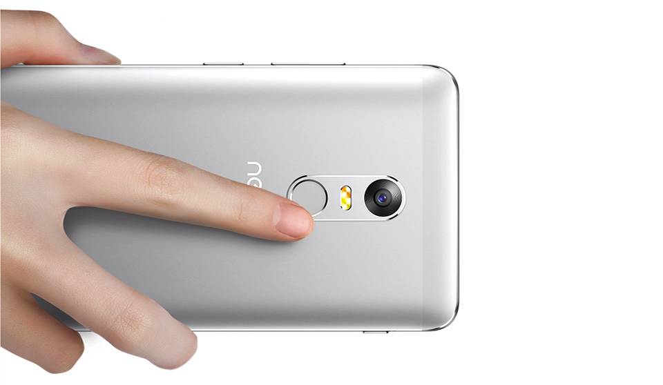 پشت گوشی تقریبا بدون پستی و بلندی است و بهراحتی میتوان آن را روی سطوح صاف قرار داد. این اولین گوشی تیپی-لینک است که برای بازکردن قفلش میتوانید از حسگر اثر انگشتتان استفاده کنید. این حسگر دقیقا زیر دوربین قرار گرفته است. دسترسی به این حسگر هنگامی که گوشی روی سطحی قرار دارد با مشکل همراه است؛ اما در باقی اوقات بهراحتی و با امنیت بالایی میتوانید از این حسگر استفاده کنید.