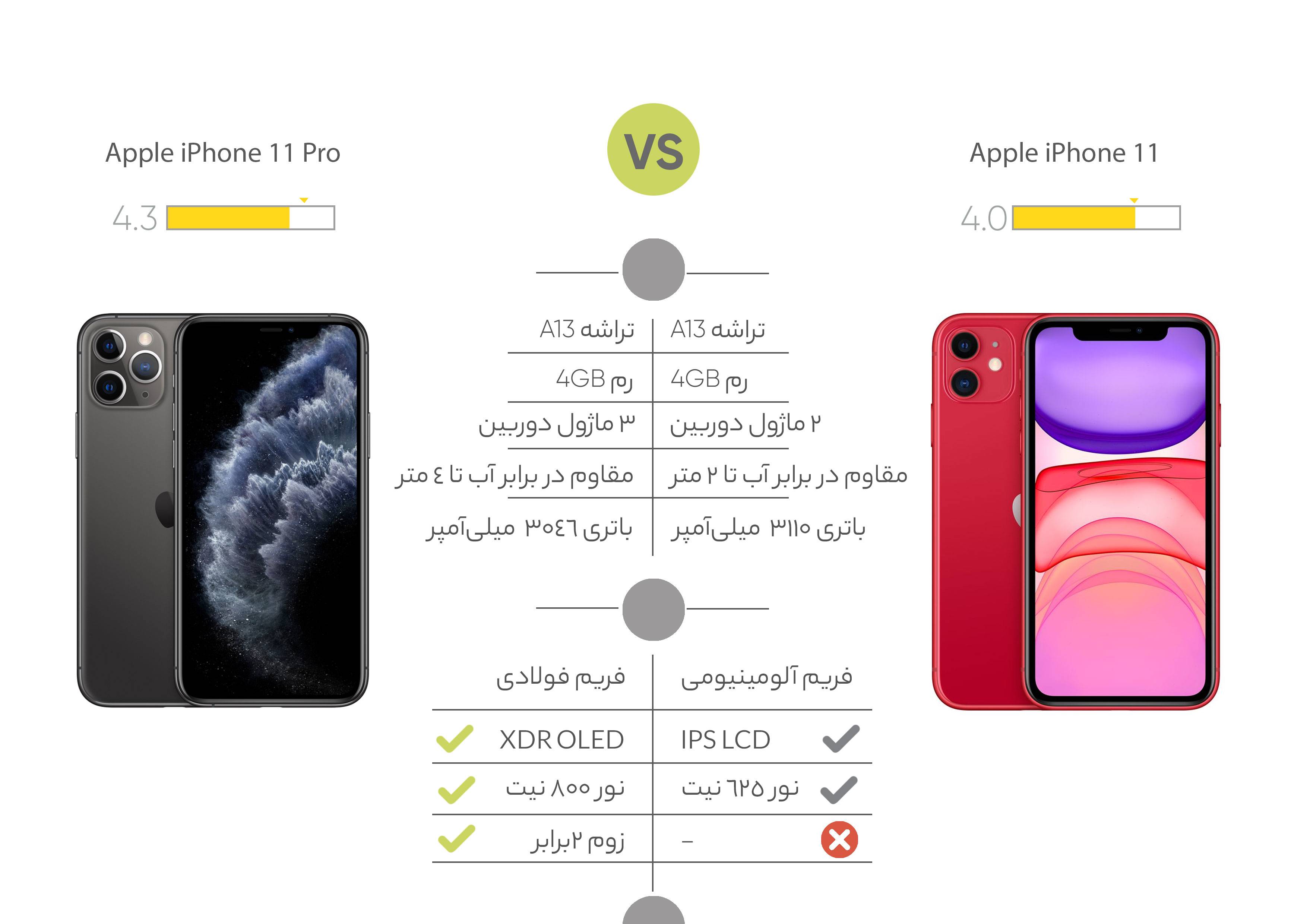 گوشی موبایل «iPhone 11 Pro» پرچمدار جدید شرکت اپل است که با چند ویژگی جدید و دوربین سهگانه روانه بازار شده است. اپل برای ویژگیها و طراحی کلی این گوشی از همان فرمول چند سال اخیرش استفاده کرده است. نمایشگر آیفون 11 Pro به پنل Super Retina مجهز شده است تا تصاویر بسیار مطلوبی را به کاربر عرضه کند. این نمایشگر رزولوشن بسیار بالایی دارد؛ بهطوریکه در اندازهی 6.5اینچیاش، حدود 458 پیکسل را در هر اینچ جا داده است که دقیقاً با تراکم پیکسلی iPhone XS برابر است. قاب پشتی آیفون جدید هم از شیشه ساخته شده تا هم گوشی مشکل آنتندهی نداشته باشد و هم امکان شارژ بیسیم باتری در این گوشی وجود داشته باشد. البته قابی فلزی این بدنه شیشهای را در خود جای داده است. این بدنهی زیبا در مقابل خطوخش مقاومت زیادی دارد؛ پس خیالتان از این بابت که آب و گردوغبار بهراحتی روی آیفون 11 Pro تأثیر نمیگذارد، راحت باشد. علاوهبراین لکه و چربی هم روی این صفحهنمایش باکیفیت تأثیر چندانی ندارند اما این هم پایان کار نیست، آیفون جدید میتواند به مدت 30 دقیقه در عمق 4 متری آب دوام بیاورد. تشخیص چهره با استفاده از دوربین جلو دیگر ویژگی است که در آیفون جدید اپل به کار گرفته شده است. اما جالبترین و واضحترین تفاوت در این محصول جدید، دوربینهایی است که این بار به شکل سهگانه در قاب پشتی جا خوش کردهاند. سه دوربین با سنسورهای 12مگاپیکسلی عکسهایی با کیفیتِ کاملاً رضایتبخش را به کاربر هدیه میدهد. دو دوربین که یکی از آنها دوربین مدت پروازی است هم دیگر بهروزرسانی در آیفون 11 پرو است. قابلیت اتصال به شبکههای 4G، بلوتوث نسخهی 5، نسخهی 13 از iOS دیگر ویژگیهای این گوشی هستند. ازنظر سختافزاری هم این گوشی از تراشهی جدید A13 بهره میبرد که تا بتواند علاوه بر کارهای معمول، از قابلیتهای جدید واقعیت مجازی که اپل این روزها روی آن تمرکز خاصی دارد، پشتیبانی کند. پرچمدار جدید اپل به باتری 3190 میلیآمپرساعتی، فناوری شارژ سریع PD2.0، فناوری شارژ بیسیم و استاندارد صوتی دالبی هم مجهز شده است.