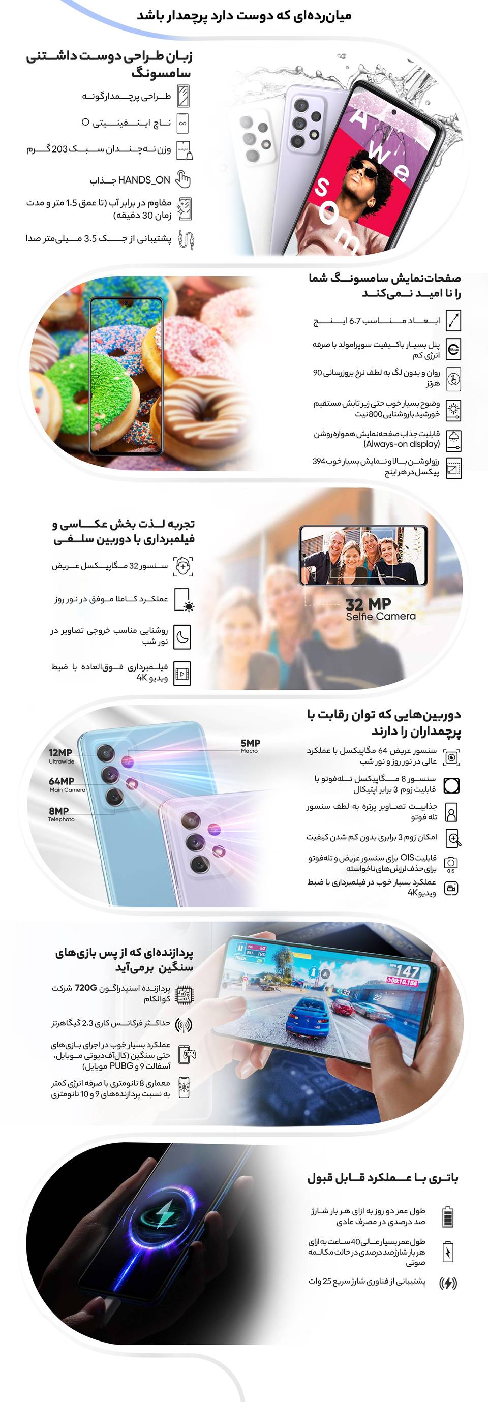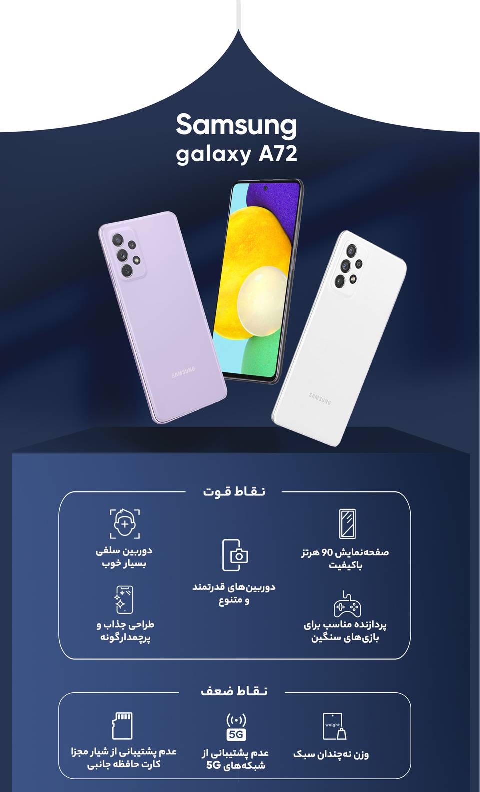 گوشی موبایل سامسونگ مدل Galaxy A72 دو سیمکارت ظرفیت 256 گیگابایت و رم 8 گیگابایت