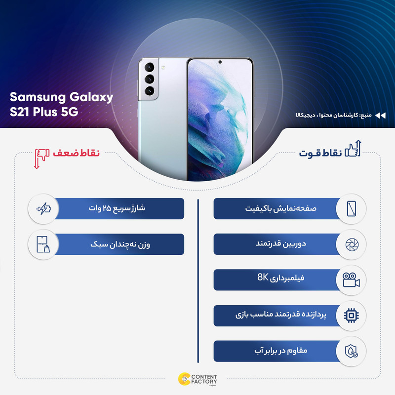 بالاخره در ابتدای سال ۲۰۲۱ شرکت سامسونگ یکی از اعضای کهکشانی گوشیهای تلفن همراه خود را به بازار عرضه کرد. پس از شایعات بسیاری که در مورد گوشیهای جدید این شرکت وجود داشت، گوشی Galaxy S21 plus با ظاهری جذاب و سخت افزاری قوی رونمایی شد و تا به الان توانسته نظر بسیاری از مخاطبین را به خود جلب کند. این گوشی جدیدترین نسخه از کهکشانیهای خانواده Galaxy S محسوب میشود. به گفته شرکت سامسونگ، این گوشی برای سبک زندگی امروز، نوآوری فردا را با خود به ارمغان آورده است و به عنوان یک پرچمدار از آن یاد میشود. یکی از مشخصههای جالب توجه این گوشی، دوربینهای قدرتمند آن است که در ادامه این مطلب بیشتر در مورد آنها صحبت خواهیم کرد. اگر فکر میکنید که حتما پیشرفتهای صورت گرفته در ماژول دوربین باعث شده است که این گوشی بسیار چشمگیر باشد باید بگوییم که اشتباه میکنید. اگر این سؤال برای شما پیش آمده است که پس دلیل این جلب توجه چیست؟ باید به شما بگوییم که این گوشی جدید دارای ویژگیهای جدید و خاصی است که ممکن است به دلیل هیاهوی پیش آمده ناشی از معرفی این گوشیها، از آنها آگاه نشده باشید. پس در ادامه با ما همراه باشید.