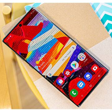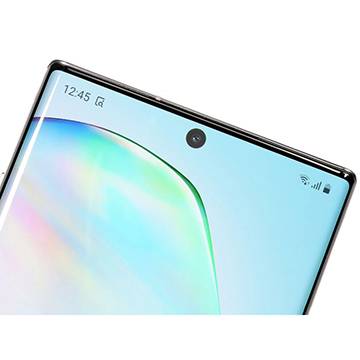 فناوری Super AMOLED به معنی تصاویر زنده و شفافیت خیرهکننده در کنار پشتیبانی از نمایش ویدئوهای HDR و HDR10 است. گلکسی نوت 10 پلاس از یک صفحه نمایش 6.8 اینچی بهره میبرد، که تقریبا تمام قاب جلویی را پوشانده است. این صفحه بسیار بسیار برای بازی، وبگردی، تماشای فیلم و بسیاری دیگر مناسب است. سامسونگ مدتها است که برای پرچمداران خود از صفحه نمایشهایی با لبه های منحنی شکل استفاده میکند و برای آنها سنگتمام میگذارد؛ کاری که با تولید S8 آغاز کرد و گوشی Note 10 Plus هم از این قاعده مستثنی نیست. تراز سفیدی مناسب، نور کافی برای دیدن محتویات زیر نورهای شدید، تراکم پیکسلی بالا که هنگام دیدن تصویر یا خواندن متن کمک میکند تا جزییات بیشتری را ببینید. سامسونگ موفق شده است برای این گوشی نسبت صفحهنمایش به بدنه 91 درصد را به دست آورد که برای یک گوشی امروزی هم میزان بسیار مطلوبی بهحساب میآید. تفاوت تماشای فیلم در این صفحهنمایش با باقی رقبا کاملا محسوس است و بیتردید سامسونگ در این زمینه برنده بیچونوچرا است.