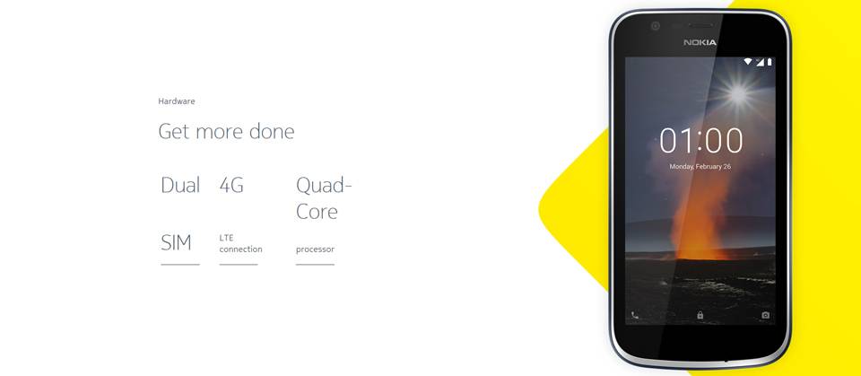 این گوشی توسط دیجیکالا با تایید سازمان حمایت مصرف کنندگان و تولیدکنندگان عرضه میشود و برچسب قیمت مصرفکننده دارد. این گوشی با قیمت کنترلشده وارد کشور شده و فقط برای عرضه به مصرفکننده نهایی تامین شده است. به علت محدودیت در تعداد این گوشیها و به منظور توزیع عادلانه در سراسر کشور، سازوکار مشخص و شفافی به شرح زیر طراحی شده است: - هر کاربر فقط میتواند یک عدد از این گوشیها را خریداری کند - برای جلوگیری از سواستفادههای احتمالی، مشخصات خریدار با کنترل و تطبیق شماره موبایل، مشخصات کارت بانکی، آدرس و کد ملی بررسی خواهد شد. - در صورت هرگونه تخطی از شرایط فوق، سفارش لغو و وجه پرداختی عودت خواهد شد. «نوکیا 1»، یکی از گوشیهای اندرویدی این شرکت فنلاندی است که در آوریل 2018 عرضه شد. این گوشی بدنهای کاملا پلاستیکی دارد که دارای کواهینامهی IP52 است و این یعنی بدنه محافظی از جنس نانو دارد و دافع مایعات است. برای این محصول صفحهنمایشی 4.5اینچی با دقت FWVGA (معادل 480×854 پیکسل) در نظر گرفته شده است. دربارهی روکش محافظ روی صفحهنمایش این گوشی چیزی گفته نشده، پس بهتر است هنگام کارکردن با آن احتیاط کنید. قاب پشت گوشی بهصورت یکدست طراحی شده و نوارهای مربوط به آنتندهی گوشی، در قاب پشتی دیده نمیشوند. نوکیا 1 از تراشهی MT6737M ساخت شرکت مدیاتک، یک گیگابایت رم و هشت گیگابایت حافظهی داخلی استفاده میکند؛ بنابراین یک گوشی میانرده محسوب میشود. این گوشی بهطور پیشفرض از اندروید نسخهی 8٫1 برخوردار است که از رابط کاربری استاندارد اندروید، بدون هیچ تغییر یا برنامهی اضافی استفاده میکند. دوربین اصلی نوکیا 1 از حسگری پنج مگاپیکسلی استفاده میکند که به فلش LED مجهز شده است. دوربین جلویی هم که حسگری دو مگاپیکسلی دارد. تمام این سختافزار توسط یک باتری لیتیوم یونی با ظرفیت 2150 میلیآمپرساعت تغذیه میشود. از دیگر مشخصات این گوشی میتوان به بلوتوث 4.2 و پشتیبانی از کارتحافظهی MicroSD تا ظرفیت حداکثر 128 گیگابایت اشاره کرد. نوکیا 1 در دو رنگ آبی تیره و قرمز ساخته شده است.