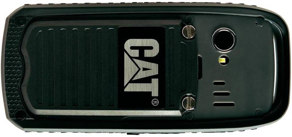 در پشتی برای استفاده راحت ابعاد کوچکی دارد ولی با دو پیچ در جای خود محکم شده و برای باز کردن آن باید این دو پیچ را با وسیلهی مخصوصی که خود کاترپیلار در نظر گرفته استفاده کنید. بعد از باز کردن آن باتری ۱۳۰۰ میلیآمپر ساعتی را میبینید که وزن زیاد گوشی به خاطر آن است چون بسیار بزرگ و سنگین است. این باتری در حالت آمادهبهکار تا ۱۳ روز و هنگام مکالمه تا ۹.۵ ساعت شارژدهی دارد. این میزان برای گوشیهایی که در ردهی تلفنهای همراه هوشمند قرار نمیگیرد، مشکلی بهحساب نمیآید. این گوشی سیستمعامل خاصی ندارد. از زبان فارسی پشتیبانی می کند اما منوی فارسی ندارد و برای کسانی که میخواهند زبان منوی گوشیشان را فارسی کنند شاید خبر خوبی نباشد. قابلیت پخش MP3 و ویدیو و همچنین چراغقوه هم از دیگر امکانات این گوشی است.