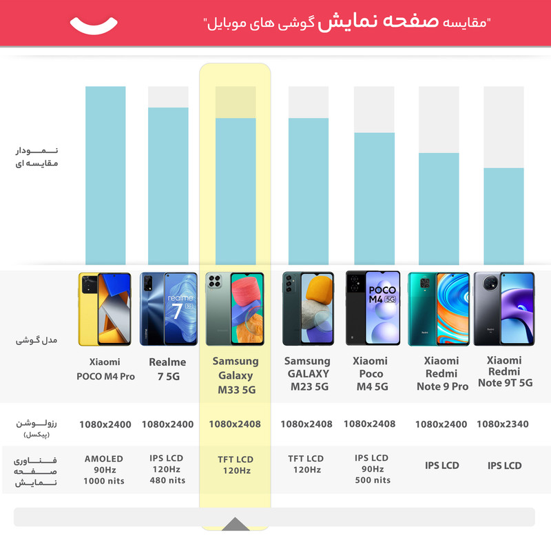 سامسونگ همواره در زمینه صفحهنمایش گوشیهای هوشمند عملکرد بسیار خوبی داشته و سامسونگ Galaxy M33 5G هم از این اتفاق مستثنی نیست و به صفحهنمایش با ابعاد ۶.۶ اینچ و رزولوشن ۱۰۸۰×۲۴۰۸ پیکسل از نوع TFT مجهز شده است. شاید در نگاه اول بگویید که حضور پنل صفحهنماش TFT سبب خواهد شد تا کیفیت ضعیفتری به نسبت پنلهای صفحهنمایش اولد و یا امولد شاهد باشید که کاملا درست است، اما باید بگوییم که با توجه به توانایی نمایش ۴۰۰ پیکسل در هر اینچ و حداکثر نرخ بروزرسانی ۱۲۰ هرتز، سبب شده تا عملکرد بسیار خوبی را از این صفحهنمایش شاهد باشید. عملکرد بسیار خوبی که اگر در کنار یک پنل اولد و یا امولد قرار بگیرد، تفاوت چندانی به چشم نیاید. نرخ بروزرسانی بسیار خوب هم در نهایت صفحهنمایش بدون لگ و بسیار روانی را با خود بههمراه دارد و از طرفی کیفیت بهتری در اجرای بازیهایی با گرافیک بالا مثل کالآفدیوتی موبایل و تماشای ویدیوهای باکیفیت به نسبت صفحاتنمایش با نرخ بروزرسانی ۹۰ هرتز ارائه میکند.