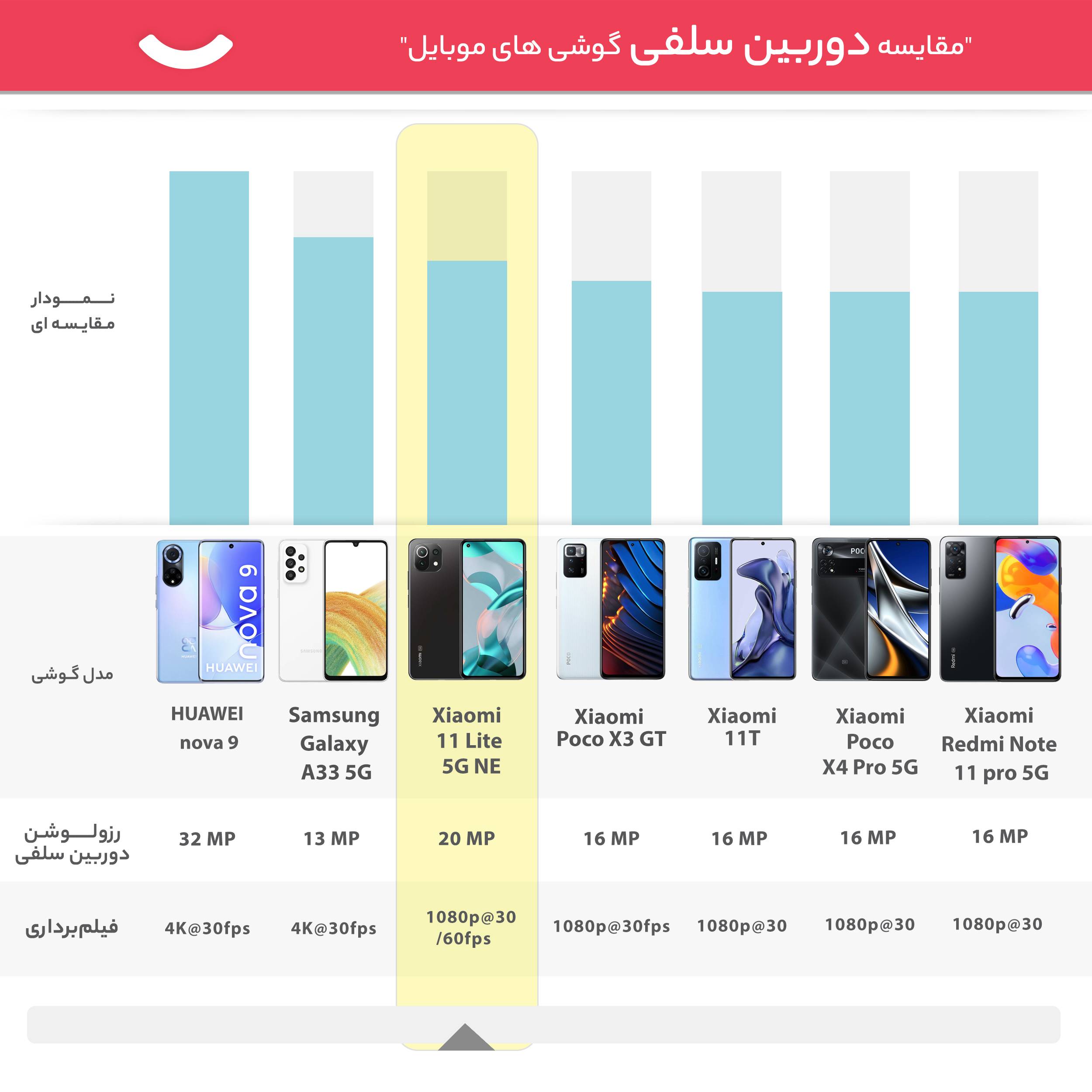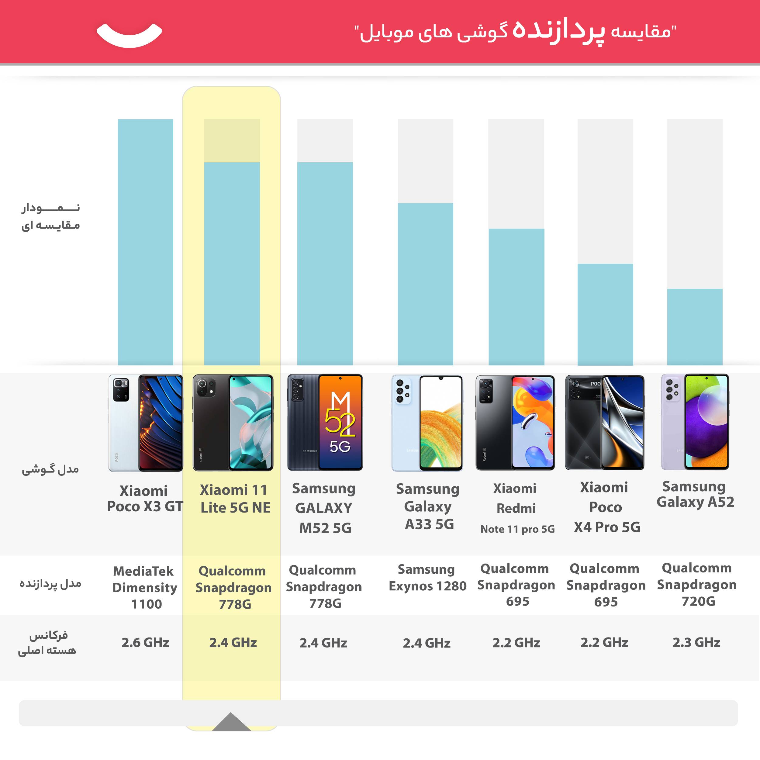 در میان گوشیهای هوشمند پرچمدار شیائومی، شاهد رونمایی برخی از گوشیهای هوشمندی بودیم که به مشخصات فنی در حد و اندازه گوشیهای پرچمدار مجهز شده بودند که به نسبت پرچمداران قیمت مقرون بهصرفهتری داشتهاند. یکی از این گوشیهای هوشمند، شیائومی 11 Lite 5G NE است. طراحی در نظر گرفته شده برای این گوشی مشابه با طراحی شیائومی Mi 11 Lite 5G است. در نمای روبهرویی شیائومی 11 Lite 5G NE به صفحهنمایش 6.55 اینچ با رزولوشن 1080×2400 پیکسل از نوع امولد مجهز شده است. صفحهنمایش بسیار باکیفیتی که توانایی ارائه نرخ بروزرسانی 90 هرتز را دارد. در قسمت پشتی سه سنسور دوربین در نظر گرفته شده است که یک سنسور دوربین اصلی با رزولوشن 64 مگاپیکسل از نوع عریض در کنار سنسور 8 مگاپیکسل از نوع فوق عریض (ultra wide) و سنسور 5 مگاپیکسل از نوع تلهفوتو ماکرو، سنسورهای دوربین سهگانه این گوشی هوشمند را تشکیل میدهند. برای دوربین سلفی هم سنسور مناسب با رزولوشن 20 مگاپیکسل در نظر گرفته شده است. در بخش مشخصات سختافزاری هم شیائومی 11 Lite 5G NE به پردازنده میانرده اما قدرتمند اسنپدراگون 778G 5G شرکت کوالکام مجهز شده است. پردازندهای با عملکرد بسیار مناسب که توانایی پشتیبانی از شبکههای اینترنتی نسل پنجم یا همان 5G را هم دارد. باتری 4520 میلیآمپرساعت این گوشی هوشمند هم توانایی ارائه طول عمر مفید نزدیک به دو روز را در شرایط استفاده معمولی دارد.