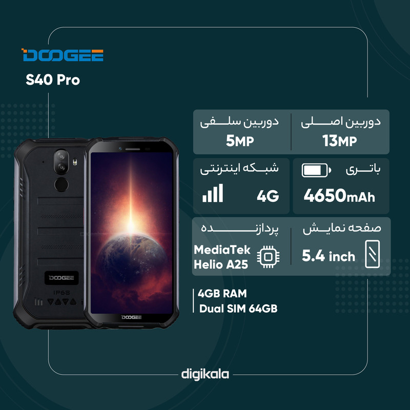 گوشی موبایل دوجی مدل S40 PRO دو سیم کارت ظرفیت 64 گیگابایت و رم 4 گیگابایت