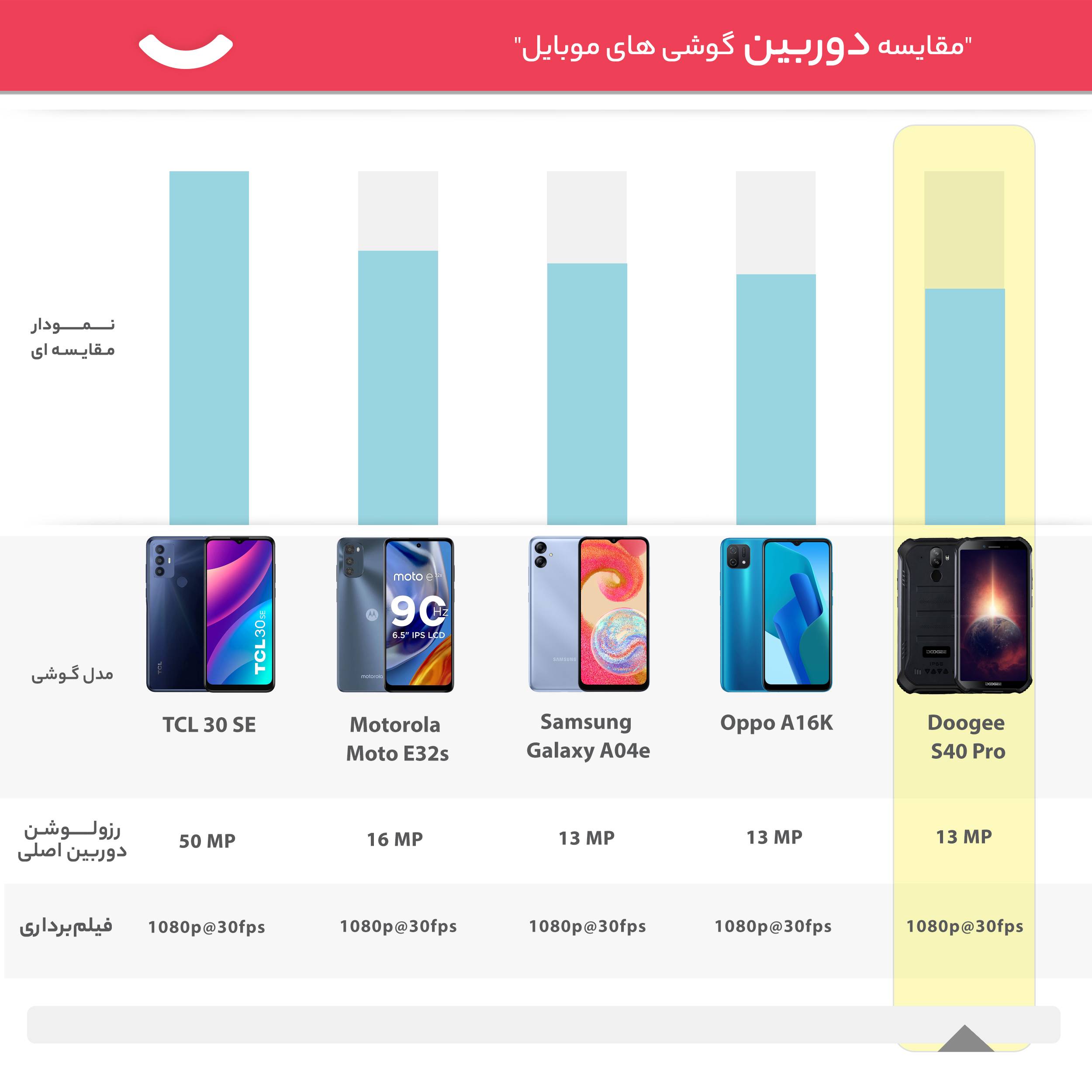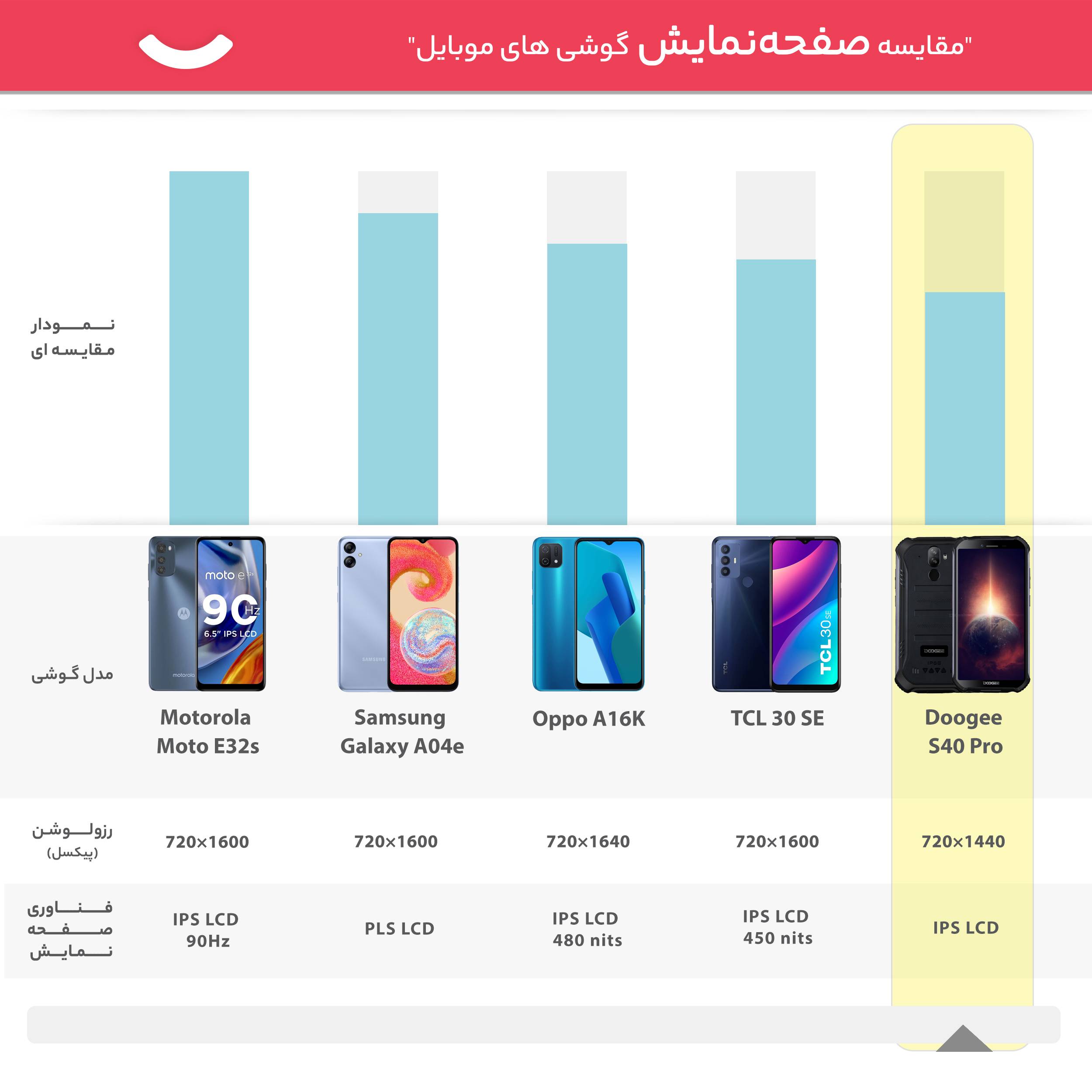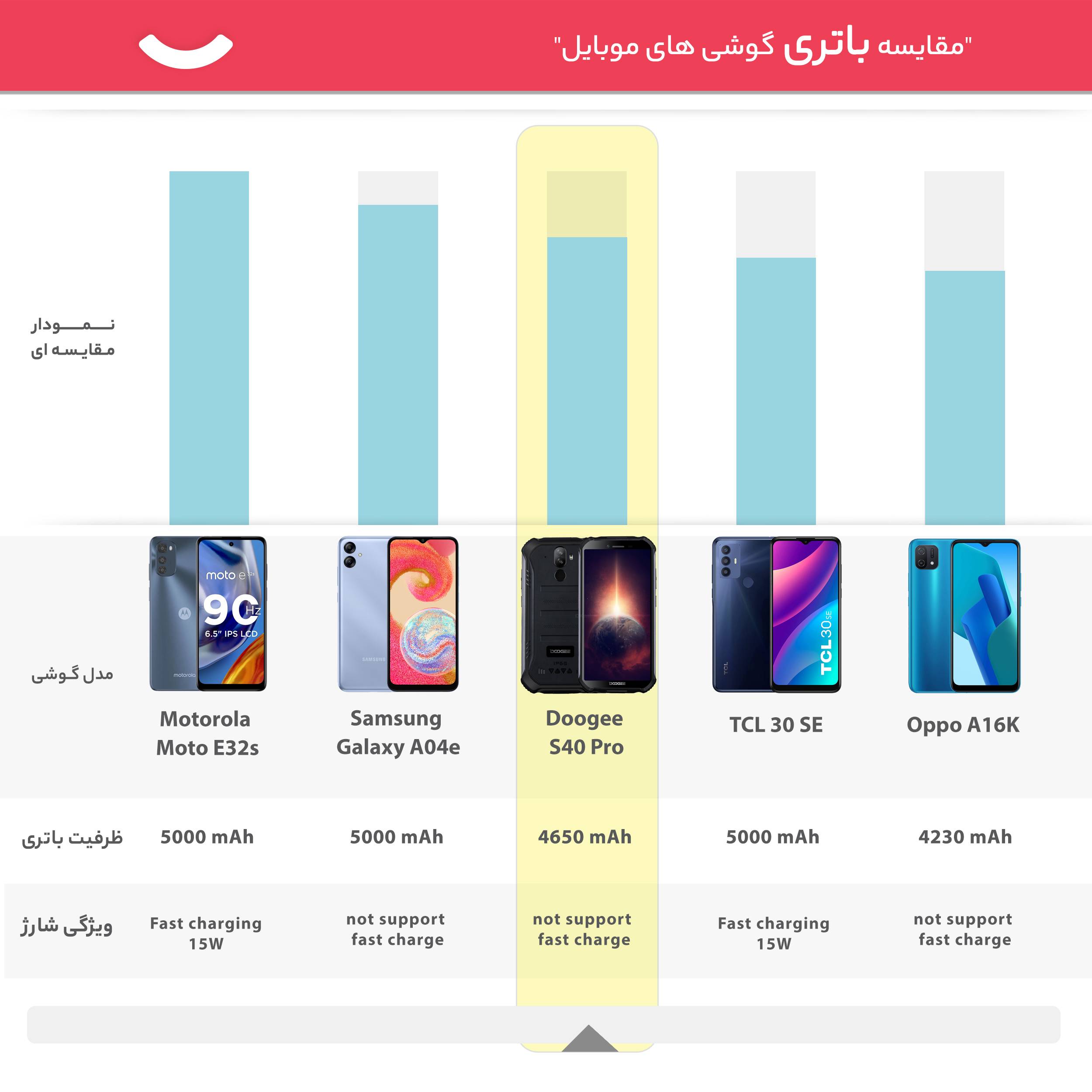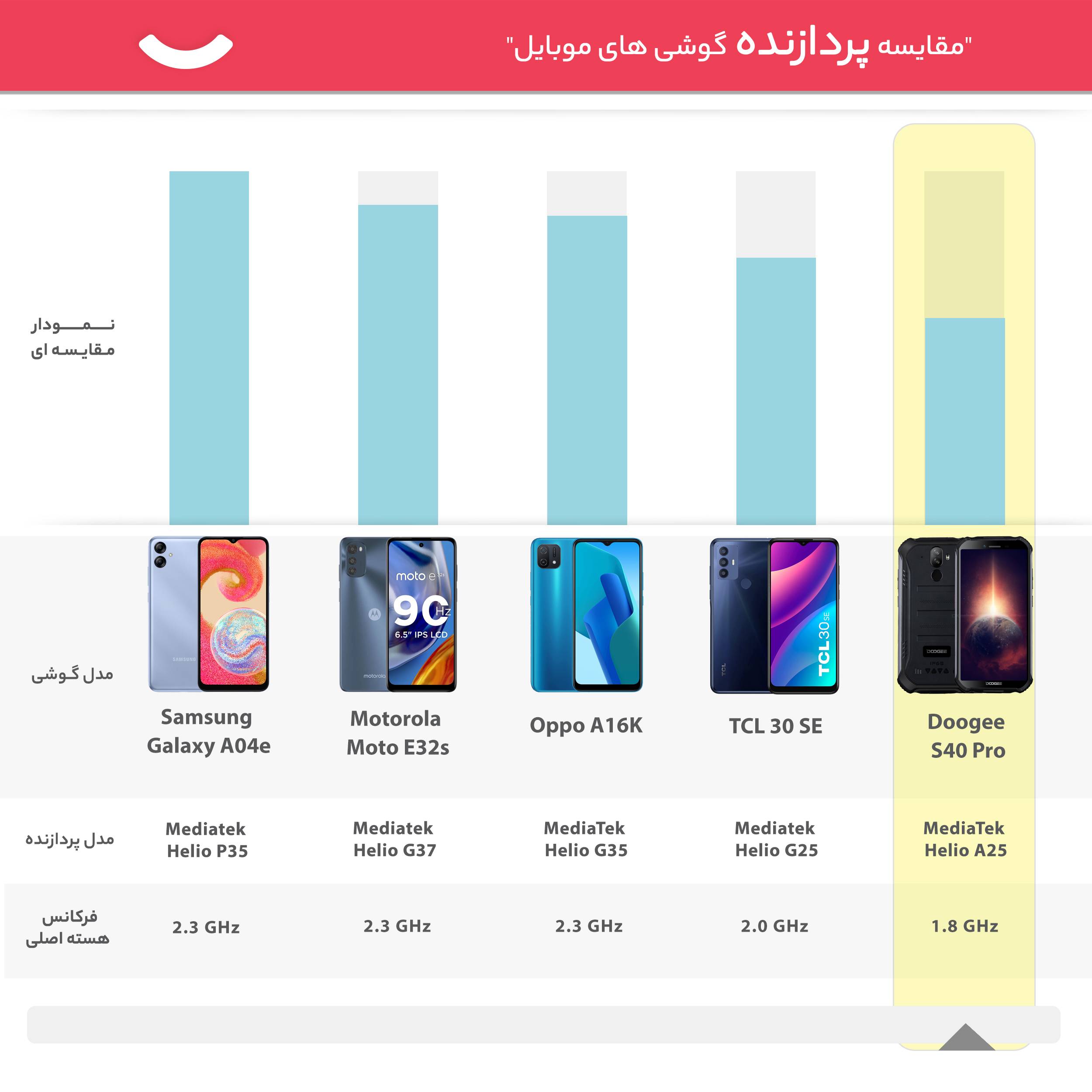شرکت Doogee توانسته است تا بهامروز گوشیهای هوشمندی را معرفی کند که بهخوبی توان استقامت در شرایط سخت را داشته باشند. یکی از گوشیهای هوشمند این شرکت که بسیاری از استانداردهای نظامی را هم پشتیبانی میکند، Doogee S40 Pro است. طراحی در نظر گرفته شده برای این گوشی هوشمند طراحی بسیار سادهای است. در نمای روبهرویی این گوشی به صفحهنمایش 5.4 اینچ با رزولوشن 1440×720 مجهز شده است. صفحهنمایشی از نوع IPS LCD که توانایی نمایش 295 پیکسل در هر اینچ را دارد. در قسمت پشتی هم دو سنسور برای دوربین در نظر گرفته شده است که یک سنسور دوربین اصلی با رزولوشن 13 مگاپیکسل از نوع استاندارد در کنار سنسور 2 مگاپیکسل سنجش عمق، سنسورهای دوربین دوگانه Doogee S40 Pro را تشکیل میدهند. برای دوربین سلفی هم سنسور با رزولوشن 5 مگاپیکسل در نظر گرفته شده است. در بخش مشخصات سختافزاری هم این گوشی هوشمند به پردازنده میانرده MediaTek Helio A25 مجهز شده است. باتری با میزان ظرفیت 4650 میلیآمپرساعت هم از دیگر مشخصات در نظر گرفته شده برای این گوشی هوشمند است.
