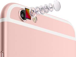 بعد از چهار نسل استفاده از دوربینهایی با سنسور 8 مگاپیکسل، حالا آیفون 6s دوربینی با سنسور 12 مگاپیکسل دارد. این سنسور دریچهی دیافراگم f/2.2 دارد که در مقایسه با نسل قبلی تغییری نداشته است. احتمالا سایز سنسور هم تغییری نداشته و همان 3/1 اینچ باقی مانده است. همچنین این سنسور میتواند تصاویری با پیکسلهایی به اندازهی 1.22 میکرونمتر ثبت کند که در مقایسه با نسل قبلی کوچکتر شدهاند. همچنین استفاده از فناوری جدید «جداسازی عمیق پیکسلی» (Deep Trench Isolation) به بهبود کیفیت تصاویر کمک میکند. در این فناوری با جداسازی هر پیکسل از پیکسلهای مجاور، از رنگپریدگی تصاویر جلوگیری میشود. اپل میتوانست مثل سایر رقبا، در کنار افزودن به تعداد پیکسلهای تصاویر از دریچهی دیافراگم گشادهتری برای ثبت تصاویر بهتر بهره ببرد؛ علاوهبراین برای اولین بار در گوشیهای ساخت اپل میتوان با آیفون 6s، ویدیوهایی با رزولوشن 4K و سرعت 30 فریم بر ثانیه و صدای استریو ضبط کرد.