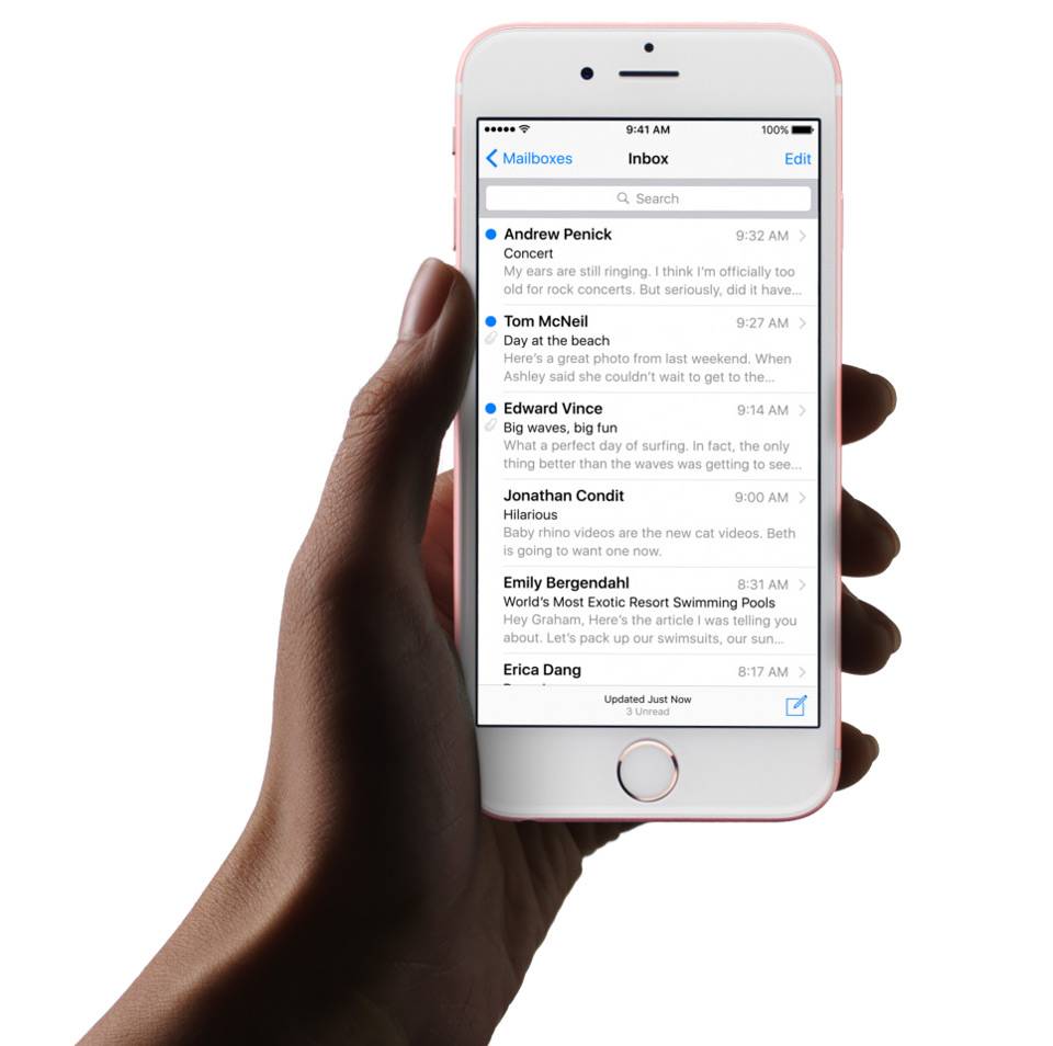 گوشی «اپل آیفون 6اس» (Apple iPhone 6s) طبق عادت هرساله، در جریان مراسمی جذاب معرفی شد. البته در کنار این قابلیتهای مثالزدنی، رنگ رزگلد هم در کنار رنگهای قبلی خاکستری، طلایی و نقرهای به رنگهای این گوشی افزوده شده است. قابلیت «لمس فشاری» (Force Touch) که قبلتر در مکبوک و اپل واچ استفاده شده بود، حالا با تغییراتی به آیفون آمده است. این فناوری که با نام جدید «لمس سهبعدی» (3D Touch) معرفی شد، قادر است میزان فشار وارده روی نمایشگر را تشخیص دهد و مطابق با آن عملکردهای مختلفی انجام دهد. در مقابل، استفاده از این فناوری در آیفون جدید باعث شده که در مقایسه با نسخهی قبلیاش، وزن و ضخامتی بیشتر داشته باشد. اما نمایشگر این گوشی بدون تفاوت با نسل قبلی از نوع LCD با فناوری IPS است. همان سایز 4.7اینچی با رزولوشن 1334 در 750 و تراکم پیکسلی 326 آیفون 6 در نسل جدید آیفون تکرار شده است. اپل برای محافظت این نمایشگر، از لایهای مقاوم دربرابر خطوخش و همچنین لایهای محافظ در مقابل عرق و جذب اثرانگشت استفاده کرده است. دراین سری برای مقاومسازی آلومینیوم از زینک استفاده شده است و برخلاف بسیاری از دیدگاهها این آلومینیوم از نظر وزنی با سری 6000 تفاوت چندانی ندارد. اپل بالاخره و آن هم بعد از چهار نسل، تصمیم به استفاده از دوربین بهتری برای آیفون جدید گرفت. استفاده از سنسوری 12مگاپیکسلی برای دوربین اصلی و سنسوری 5مگاپیکسلی در دوربین سلفی از تغییرات بزرگ این نسل از آیفون هستند. از دیگر قابلیتهای جدید که اپل تاکید زیادی روی آن دارد، استفاده از تراشهی قدرتمند A9 در آیفون 6s است. این تراشه از نوع 64بیتی است، با لیتوگرافی 14نانومتری تولید شده و دارای 2 هستهی پردازشی با معماری ARMv8 است. توان پردازشی هر هسته از این مجموعه در حدود 1.8 گیگاهرتز است. تراشهی A9 از نسل قبلیاش تا 70 درصد سریعتر است. پردازندهی گرافیکی آیفون جدید هم پیشرفتی 90درصدی در سرعت داشته است. علاوهبر این پیشرفتها، استفاده از 2 گیگابایت رم کمک میکند تا کاربران تجربهی کاربری بهتری در اجرای برنامهها و بازیها داشته باشند. به لطف این تراشه، سرعت اتصال به شبکههای 4G هم دوبرابر شده است. نسل جدید حسگر اثرانگشت در این گوشی مورد استفاده قرار گرفته است که به ادعای اپل، سرعت و دقت بیشتری نسبت به نسل قبل دارد.