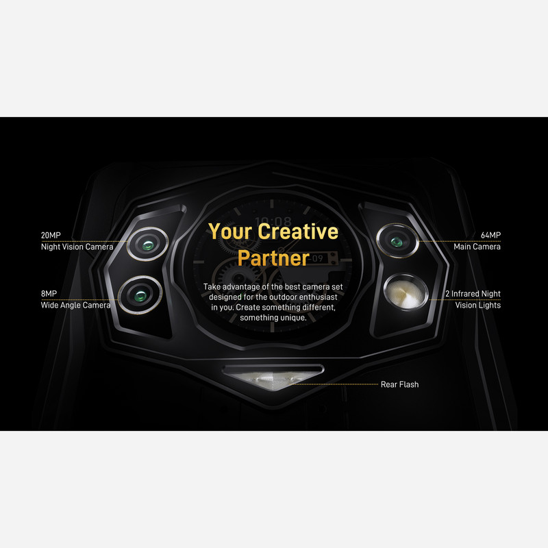 سنسور دوربین ۲۰ مگاپیکسل از نوع night vision این گوشی جذاب را همراهی میکند. سنسوری که حتی در تاریکی مطلق هم میتواند تصاویر جذابی را ارائه کند. سنسور سنجش دما هم قابلیت جذاب دیگری در بخش سنسورهای دوربین است. دوجی سعی داشته تا مشخصاتی را برای این گوشی در نظر بگیرد که به خوبی از پس هدفی که برایش تعیین شده است بربیاید. ضبط ویدیو با نهایت کیفیت 1440p هم در بخش فیلمبرداری عملکرد کاملا قابل قبولی دارد و چنین میزان رزولوشنی برای ضبط ویدیو کاملا برای یک چنین گوشی هوشمندی کافی است. برای دوربین سلفی هم سنسور با رزولوشن ۱۶ مگاپیکسل در نظر گرفته شده که در نور روز میزان زیادی از توقعات شما را در عکاسی برآورده میکند.