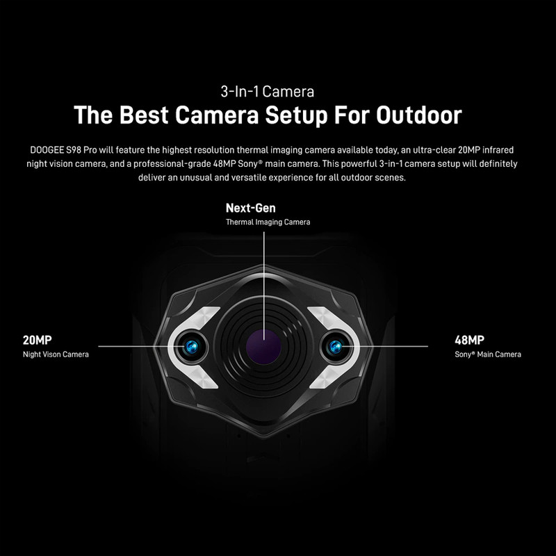 اگر به دنبال خرید گوشیهای هوشمندی هستید که در شرایط سخت توانایی استقامت بالایی داشته باشد و در برابر ضربات و افتادنهای احتمالی مقاوم باشد، گوشیهای برند دوجی میتوانند گزینه بسیار مناسبی برای شما باشد. دوجی S98 Pro هم یکی از این گوشیهای هوشمند است. این گوشی به صفحهنمایش با ابعاد 6.3 اینچ و رزولوشن 1080×2340 پیکسل از نوع IPS مجهز شده است. صفحهنمایشی که توانایی نمایش 409 پیکسل در هر اینچ و حداکثر روشنایی 500 نیت (شمع در متر مربع) را دارد. در قسمت پشتی یک سنسور دوربین اصلی با رزولوشن 48 مگاپیسل از نوع عریض (wide) با گشودگی دریچه دیافراگم f/1.8 در کنار سنسور 20 مگاپیکسل از نوع night vision در کنار یک سنسور Thermal imaging که توانایی اندازهگیری حرارت را دارد، سنسورهای دوربین قسمت پشتی این گوشی را تشکیل میدهند. بریدگی قطرهای شکل ناچ واتردراپ در قسمت بالایی و مرکزی صفحهنمایش هم سنسور دوربین سلفی با رزولوشن 16 مگاپیکسل را در خود جای داده است. در بخش مشخصات سختافزاری هم حضور پردازنده هلیو G96 شرکت مدیاتک هم سبب شده تا عملکرد قابل قبولی از این گوشی هوشمند در اجرای بازیهای محبوب و نرمافزارهای کاربردی ارائه کند. حضور باتری قدرتمند با میزان ظرفیت 6000 میلیآمپرساعت هم به ازای هر بار شارژ صد درصدی، توانایی ارائه طول عمر مفید (زمان آماده بهکار) دو روز و حتی بیشتر را دارد.