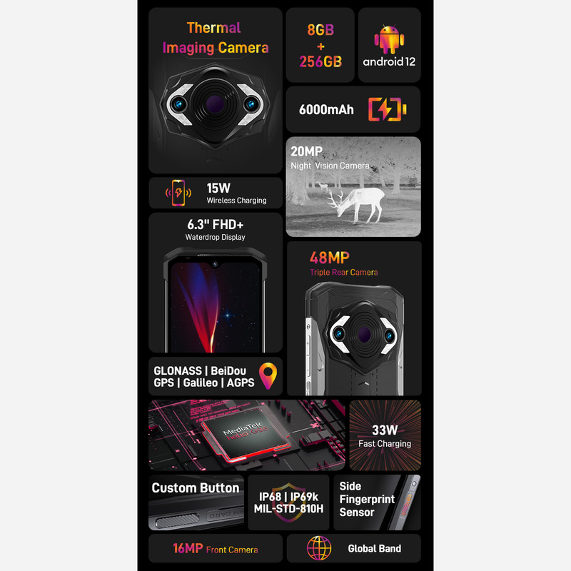 | ویژگیهای کلیدی | دوربین اصلی مناسب سنسور اندازهگیری حرارت دوربین عکاسی در شب باتری فوق قدرتمند |