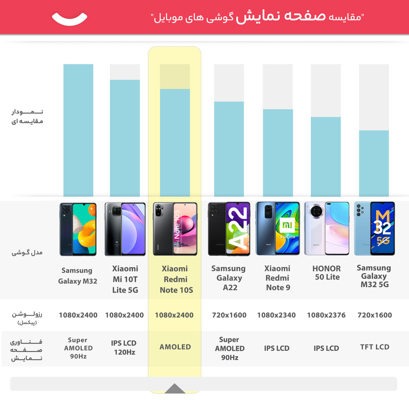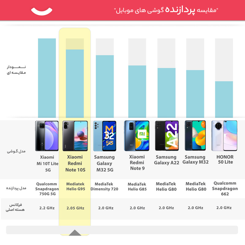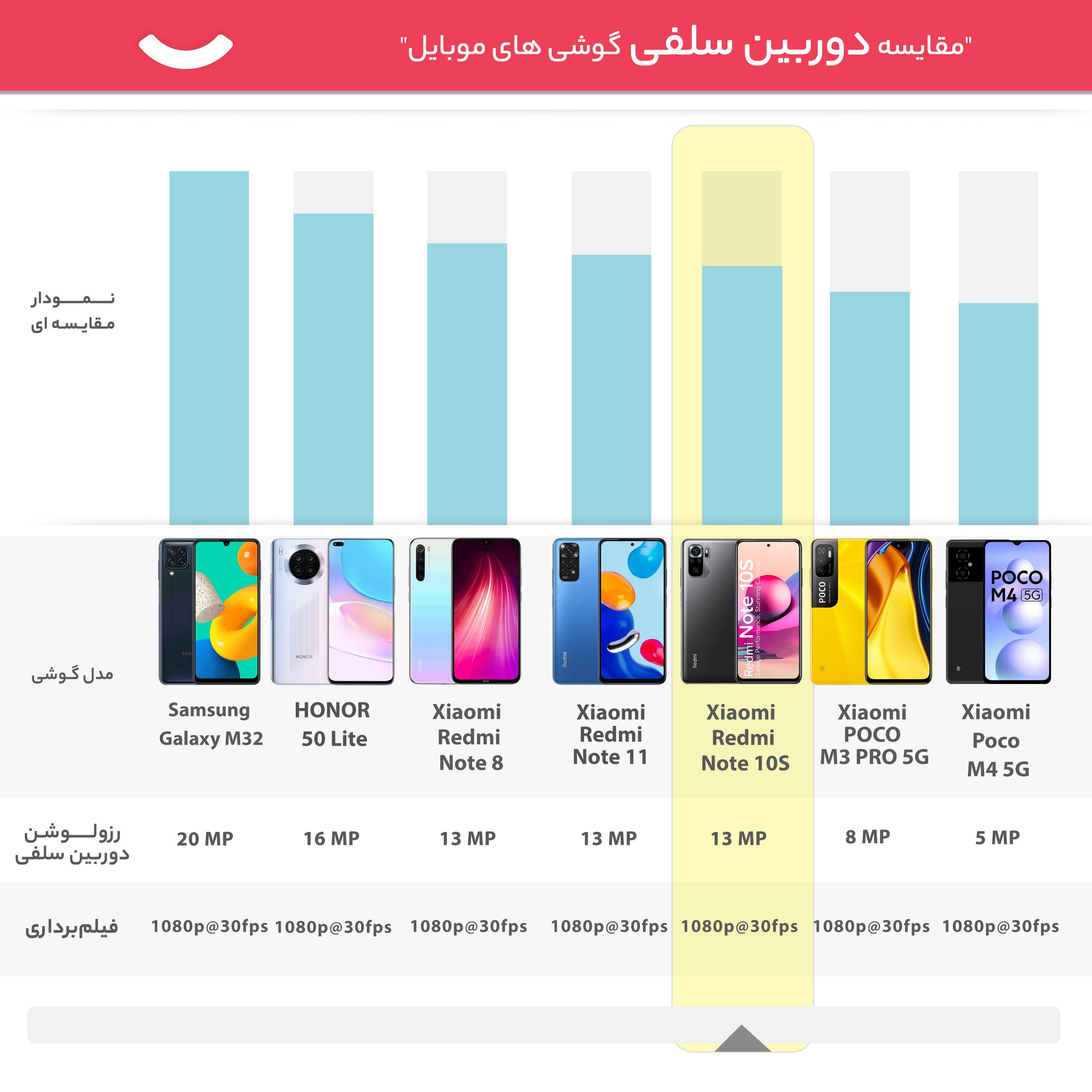 سری Redmi گوشیهای هوشمند شیائومی تا به امروز توانستهاند با بهره بردن از مشخصات فنی مناسب و حتی قدرتمند، عملکرد بسیار خوب و قابل قبولی را بهنمایش بگذارند. یکی از گوشیهای هوشمند میانرده و باکیفیت این سری، Redmi Note 10S NFC است که در جایگاه یک گوشی هوشمند میانرده به مشخصات فنی مناسب و حتی قدرتمندی مجهز شده است. در نمای روبهرویی این گوشی از صفحهنمایش با ابعاد 6.43 اینچ و رزولوشن 1080×2400 پیکسل از نوع امولد بهره برده است. صفحهنمایشی که در هر اینچ توانایی نمایش 409 پیکسل و حداکثر روشنایی 1100 نیت (شمع در متر مربع) را دارد. بدون شک با توجه به مشخصات در نظر گرفته شده باید گفت که Redmi Note 10S NFC به یکی از باکیفیتترین صفحاتنمایش مجهز شده است که توانایی ارائه کیفیت بسیار خوبی را دارد. در قسمت پشتی هم یک سنسور دوربین اصلی با رزولوشن 64 مگاپیکسل و گشودگی دریچه دیافراگم f/1.8 از نوع عریض در کنار سنسور 8 مگاپیکسل از نوع فوق عریض و زاویه دید 118 درجهای و دو سنسور با رزولوشن 2 مگاپیکسل از نوع ماکرو و سنجش عمق، سنسورهای دوربین چهارگانه این گوشی هوشمند میانرده را تشکیل میدهند. برای دوربین سلفی هم در بریدگی دایرهای شکل ناچ در قسمت بالایی و مرکزی صفحهنمایش، سنسوری با رزولوشن 13 مگاپیکسل از نوع عریض در نظر گرفته شده است. در بخش مشخصات سختافزاری هم میتوانیم به حضور پردازنده میانرده هلیو G95 شرکت مدیاتک (Mediatek Helio G95)، باتری با میزان ظرفیت 5000 میلیآمپرساعت و شارژر 33 واتی مجهز به تکنولوژی شارژ سریع اشاره کنیم. باتری که به ازای هر بار شارژ 100 درصدی، توانایی ارائه طول عمر مفید (زمان آماده بهکار) دو روز در استفاده معمولی را خواهد داشت. تنها تفاوت Redmi Note 10S NFC با مدل استاندارد، در پشتیبانی از NFC است.