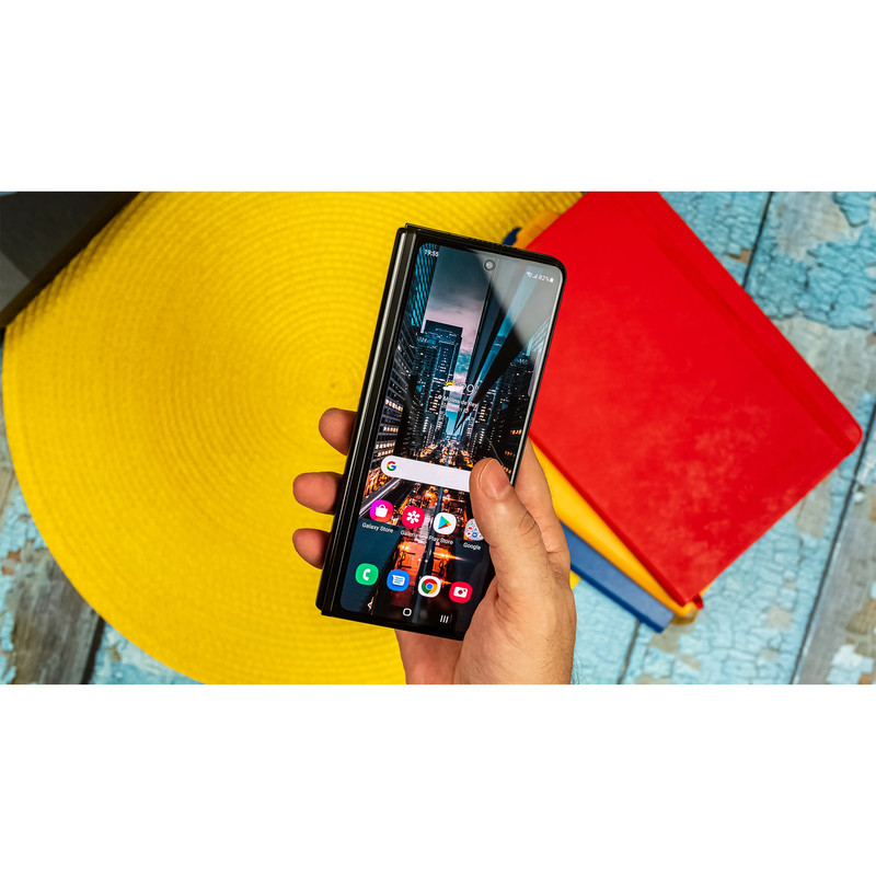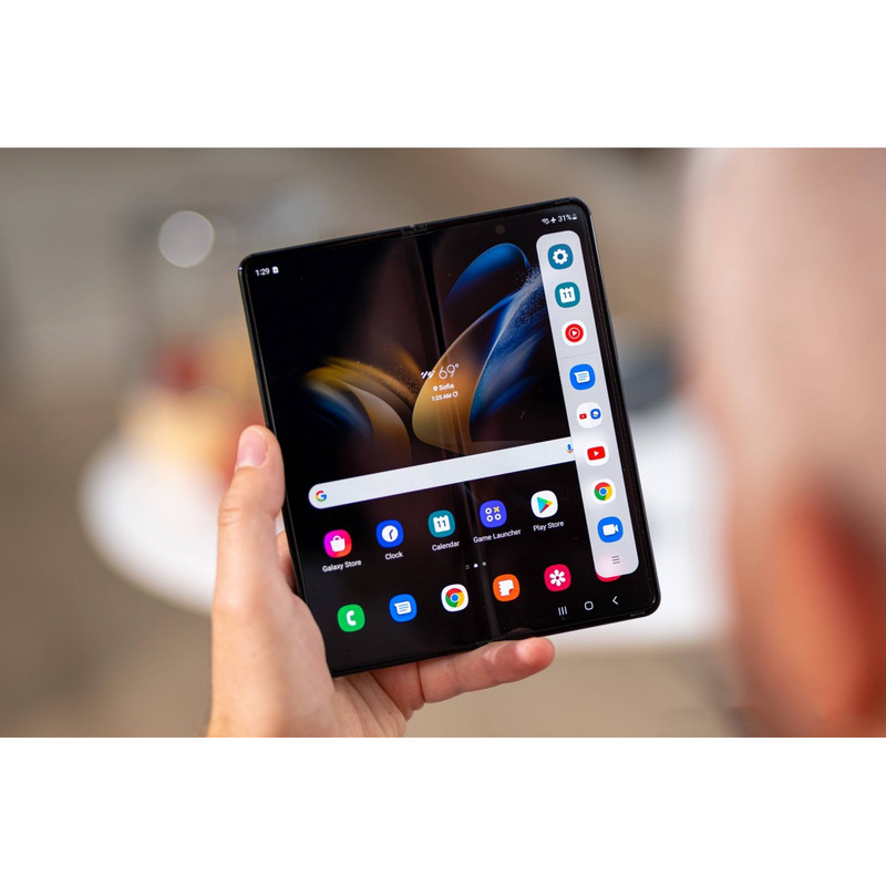 در حالت تاشده هم برای این گوشی صفحهنمایش ثانویه در نظر گرفته شده است که باید بگوییم ابعاد مناسب این صفحهنمایش سبب شده تا حس و حال استفاده یک گوشی هوشمند را به شما میدهد و برای طراحی صفحهنمایش هم از ناچ اینفینیتی O استفاده شده است. بریدگی دایرهای شکل ناچ در قسمت بالایی و مرکزی صفحهنمایش، سنسور دوربین سلفی را در خود جای داده است. سامسونگ Galaxy Z Fold4 به نسبت Galaxy Z Fold3 از وزن سبکتر ۲۶۳ گرمی بهره برده است. وزنی که باز هم برای یک گوشی هوشمند وزن سنگینی است و بدون شک کمی در استفاده طولانی مدت، خستگی برای دست بههمراه دارد اما می توانیم بگوییم با توجه به ابعاد بزرگ، طراحی مناسب و وزن خوب سبب شده تا HNADS_ON جذابی را برای شما به ارمغان بیاورد. قابلیت امنیتی و بسیار پرکاربرد حسگر اثر انگشت هم در فریم کناری و روی دکمه پاور قرار گرفته است که نهتنها عملکرد بسیار سریعی در قفلگشایی صفحهنمایش دارد، بلکه در حالت تاشده دسترسی به این حسگر فیزیکی بسیار خوب و راحت است.