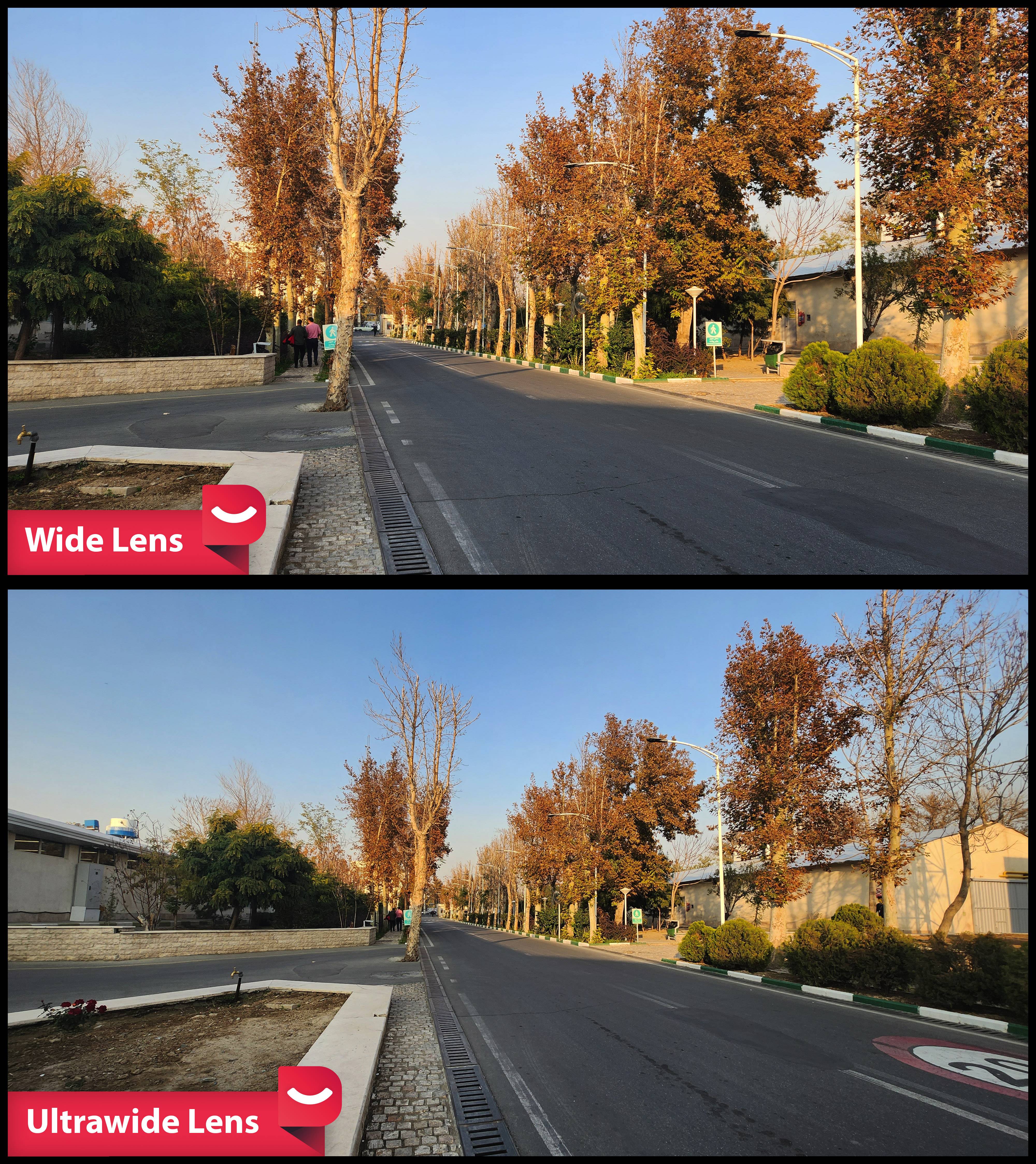 از طرفی سنسور دوربین فوق عریض با رزولوشن ۱۲ مگاپیکسل با زاویه دید ۱۲۳ درجه، امکان ثبت تصاویر بسیار جذابی را در فضای باز و برای مثال طبیعت را دارد. البته باید بگوییم که رزولوشن مناسب در نظر گرفته شده برای این سنسور دوربین فوق عریض هم سبب شده تا جزئیات با دقت مناسبی در تصاویر خروجی ثبت شده نمایش داده شوند. سنسور دوربین اصلی و تلهفوتو این گوشی هم به قابلیت لرزشگیر اپتیکال یا همان OIS مجهز شده است که تا میزان قابل توجه لرزشهای ناخواسته هنگام ضبط ویدیو و عکاسی را کاهش میدهد و در نهایت خروجی تصاویر باکیفیتی را شاهد خواهید بود. در بخش فیلمبرداری هم سنسور دوربین اصلی توانایی ضبط ویدیو با حداکثر کیفیت 4K و سرعت ۶۰ فریم در ثانیه را دارد. صفحهنمایش اصلی این گوشی به سنسور دوربین سلفی زیر صفحهنمایش با رزولوشن ۴ مگاپیکسل مجهز شده است که هنوز در زمینه ارائه کیفیت مطلوب و بسیار خوب، جای پیشرفت بسیاری دارد. اما بریدگی دایرهای شکل ناچ در قسمت بالایی و مرکزی صفحهنمایش ثانویه، سنسور دوربین سلفی با رزولوشن ۱۰ مگاپیکسل را در خودش جای داده است که از جمله قابلیتهای قدرتمند این سنسور دوربین سلفی، میتوانیم به توانایی ضبط ویدیو با حداکثر کیفیت 4K و سرعت ۶۰ فریم در ثانیه اشاره کینم.