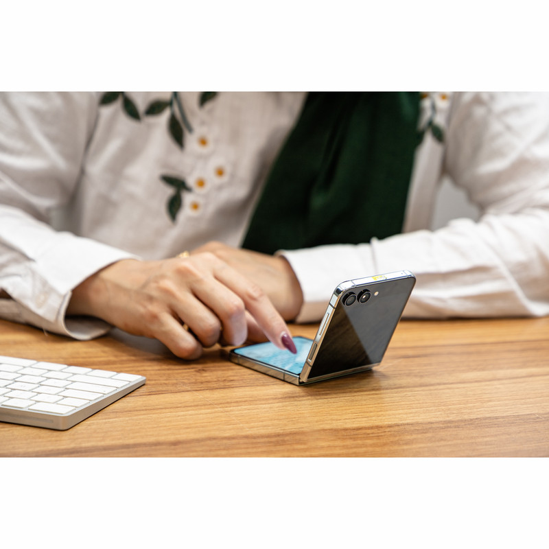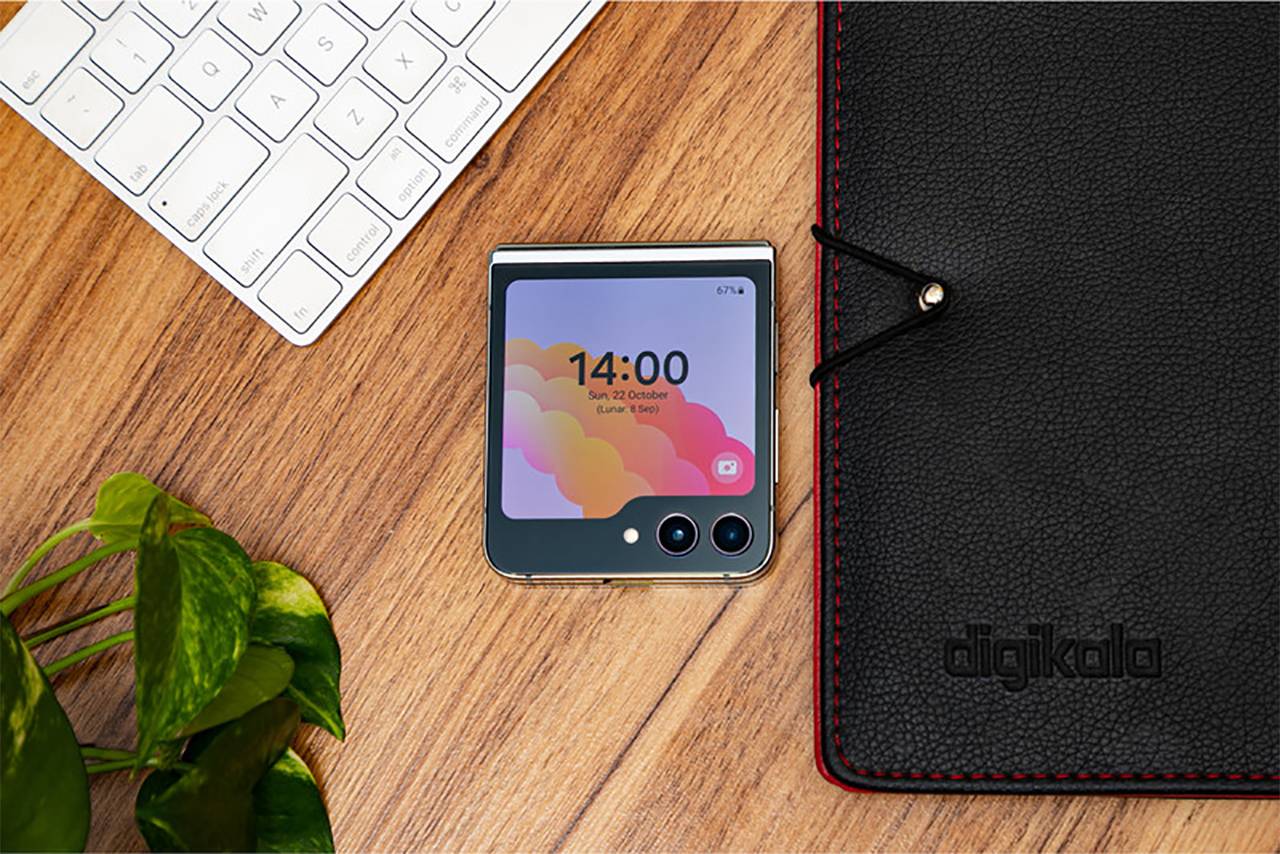 قطعاً مهمترین تغییر ظاهری Z Flip5 نمایشگر ثانویه 3.4 اینچ است. نمایشگری که نسبت به نسل اولیه Z Flip با ابعاد 1.9 اینچ، یک پیشرفت بزرگ محسوب میشود. این نمایشگر در بخش ساختاری با پنل Super AMOLED و رزولوشن 748×720 پیکسل، ظاهری شبیه به پوشه دارد تا دوربینهای دوگانه را احاطه کند. کیفیت نمایش نسبت به نسلهای قبلی بسیار بهبود پیدا کرده و تجربه بصری ویژهای را ایجاد میکند. نمایش ویجتهای مختلف و شخصیسازی گسترده، بخشی از برتریهای این نمایشگر ثانویه است. این نمایشگر با حسگر نور محیط میتواند تا 1100 نیت روشنایی را ارائه کند. تجربه استفاده از این نمایشگر محدود به رابط کاربری قبلی نیست. رابط پیشفرض نمایشگر ثانویه با یک صفحه قفل شروع میشود، که خود مجموعهای از سفارشیسازیهای صفحه قفل است. انواع مختلفی تم وجود دارد، و برخی فقط دارای یک ساعت هستند، در حالی که برخی دیگر میتوانند ویجتهایی را با خلاصه آبوهوا و اعلانها مختلف نشان دهند. برای دسترسی به قابلیتهای بیشتر، روی صفحه اصلی به مدت طولانی فشار دهید سپس میتوانید ویجتها و قابلیتهای مختلف را که میتوانید در نمایشگر ثانویه سفارشی کنید، را در اختیار داشته باشید.