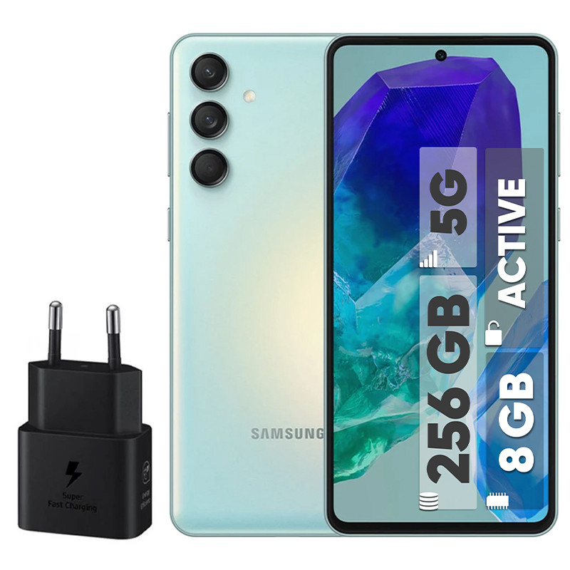 گوشی موبایل سامسونگ مدل Galaxy M55 5G دو سیم کارت ظرفیت 256 گیگابایت و رم 8 گیگابایت - اکتیو - به همراه شارژر 25 وات سامسونگ