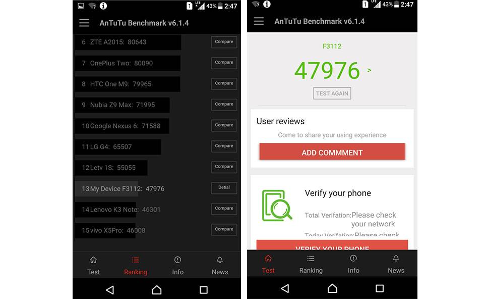 اکسپریا XA قدرت سختافزاری خود را از تراشهی مدیاتک Heilo P10 و پردازندهی هشتهستهای Cortex-A53 میگیرد. همچنین یک رم دوگیگابایتی از نوع DDR3 این مجموعه را همراهی میکند و عملکرد خوب و روانی برای این گوشی به همراه دارد. نتایج بهدست آمده از بنچمارکها بهخوبی نشان میدهند که گوشی اکسپریا XA همتراز سایر میانردههای بازار است. این گوشی در نسخهی 6.0.1 آزمون AnTuTu امتیاز 47976 را کسب کرد. اکسپریا X دارای دو شیار مجزای سیمکارت و یک شیار کارت حافظهی microSD است. از دیگر قابلیتهای این گوشی میتوان به فناوری NFC و پشتیبانی از USB OTG اشاره کرد. برخلاف گوگل، الجی و اچتیسی، شرکت سونی وداع زودهنگامی با درگاه microUSB در گوشیهای خود نداشته و ترجیح نداده از درگاه بازگشتپذیر و با سرعت شارژ بالای USB Type C در اکسپریا XA استفاده کند. علاوهبراین، سونی ادعای قدیمی خود را در مورد شارژدهی دوروزهی گوشیهای هوشمندش در مورد اکسپریا X تکرار کرده است؛ ادعایی که چندان به واقعیت نزدیک نیست. باتری 2300 میلیآمپرساعتی این گوشی میتواند در کاربری ترکیبی، نهایتا یک روز یا کمی بیشتر شارژ نگه دارد.