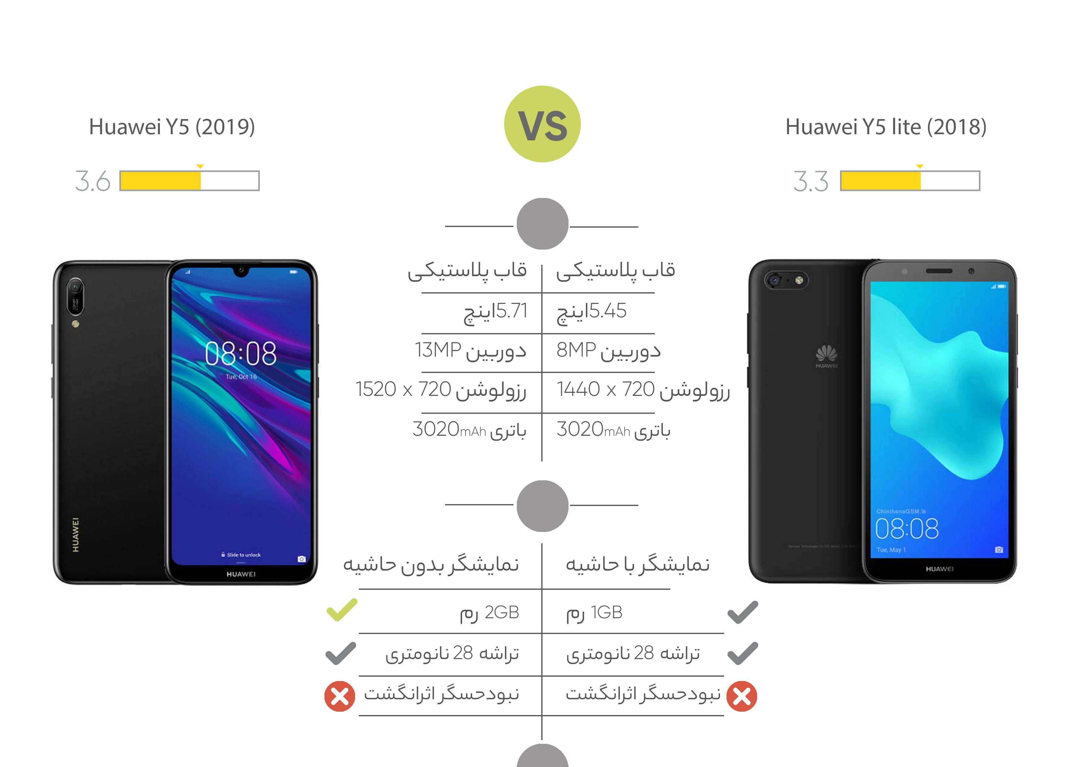 همانطور که از عنوان گوشی میانرده «Y5 2019» پیداست، هوآوی این گوشی را سال 2019 معرفی کرد تا به عنوان یک گوشی میان رده پاسخگوی نیاز افرادی باشد که نمیخواهند هزینه زیادی برای گوشی صرف کنند. این گوشی دوسیمکارته به سیستمعامل اندروید پای مجهز است و پردازندهی 4 هسته با فرکانس 2 گیگاهرتز را در کنار 2 گیگابایت حافظهی رم و 32 گیگابایت حافظهی داخلی دارد. دوربین با سنسور 13 مگاپیکسل و قابلیت اتصال به شبکهی اینترنت 4G از دیگر ویژگیهای آن است. اگر از طرفداران عکاسی با موبایل هستید، باید بدانید که سنسور 13 مگاپیکسلی این گوشی که قابلیت فوکوس خودکار و فلاش LED دارد. دوربین سلفی هم سنسوری 5 مگاپیکسلی دارد. نمایشگر 5.71 اینچی این گوشی رزولوشن 1520×720 پیکسلی دارد و تصاویری با کیفیت HD را در معرض دید کاربران قرار خواهد داد. این نمایشگر از نوع LCD است. در این مدل، از چیپست MT6761 Helio A22 مدیاتک با فرکانس 2 گیگاهرتز استفاده شده است و پردازندهی گرافیکی آن هم «PowerVR GE8320» است. با نصب کارت حافظه «microSD» میتوان 1 ترابایت فضای اضافی برای نگهداری اطلاعات یا آرشیوکردن عکس، فیلم یا فایلهای موسیقی در اختیار داشت. Y5 2019 در رنگهای مشکی و آبی و قهوه ای عرضه شده است و ظرفیتش باتری 3020 میلیآمپر ساعت است. این محصول را میتوان از خوشقیمت ترین محصولات هوآوی دانست. بدنه Y5 2019 از جنس چرم مصنوعی Faux است که در دو رنگ مشکی و کرم به علاقه مندان عرضه می شود همچنین در رنگ آبی نیز به فروش می رسد که پنل پشتی این رنگ از پلاستیک ساخته شده است.