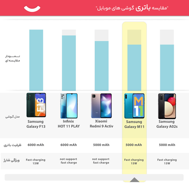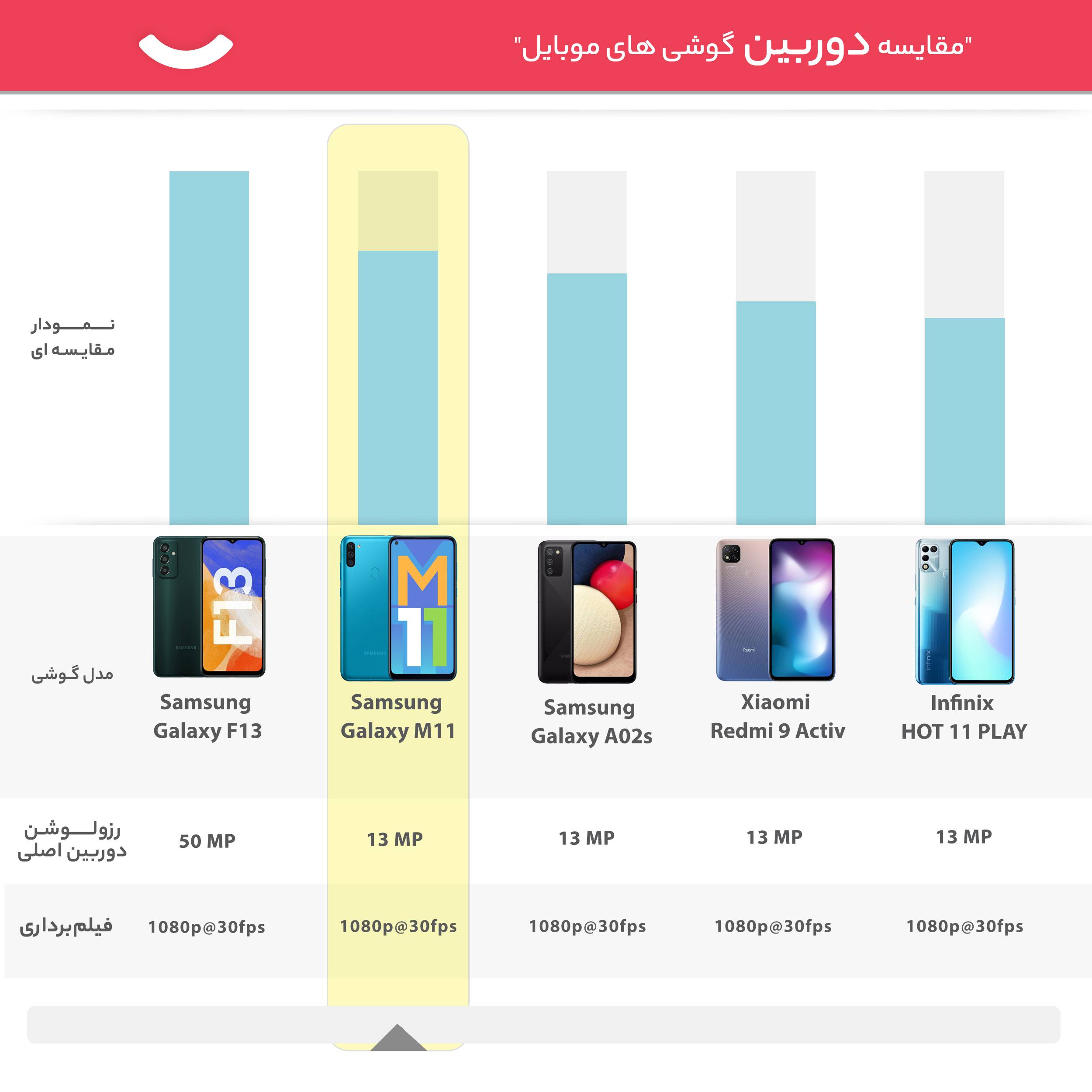سامسونگ با عرضه گوشی «Galaxy M11» یکی از مقرونبهصرفهترین محصولات سری M این شرکت را روانه بازار کرد تا تنوع را در سری محصولات A خود به حداکثر برساند. گوشی موبایل Galaxy M11 از یک صفحهنمایش 6.4 اینچی با پنل PLS TFTبهره میبرد. سامسونگ همچنان تلاش کرده است حاشیه را در این تولید جدید خود تا حد امکان کم کند. قاب پشتی و فریم گوشی M11 از جنس پلاستیک ساخته شده و قاب جلویی آن را شیشه پوشانده است؛ بهطوریکه نسبت صفحهنمایش نسبت به بدنه آن در حدود 81.6 درصد است. نمایشگر به کار رفته در گوشی M11 از کیفیت خوبی هم برخوردار است و در هر اینچ آن 268 پیکسل قرار گرفته است. این محصول سامسونگ با سیستمعامل اندروید نسخه 10 روانه بازار شده است تا محصولی بهروز و مدرن بهحساب آید. این گوشی با ظرفیت 64 گیگابایتی عرضه شده است و با استفاده از یک کارت حافظه جانبی قادر خواهید بود حافظه داخلی را افزایش دهید. سامسونگ برای گوشی M11 از یک دوربین سهگانه استفاده کرده است. یک لنز عریض با رزولوشن 13 مگاپیکسل، یک لنز فوقعریض با رزولوشن 5 مگاپیکسل و یک حسگر عمق با رزولوشن 2 مگاپیکسل، مجموعه دوربین این گوشی را تشکیل میدهند. یک دوربین سلفی 8 مگاپیکسلی هم در قاب جلویی این گوشی به کار گرفته شده است. حسگر اثر انگشت بر روی قاب پشتی، باتری 5000 میلیآمپرساعتی، درگاه ارتباطی USB Type-C و جک 3.5 میلیمتری صدا هم از دیگر مشخصات این محصول جدید است. خرید این گوشی به آن دسته از کاربران توصیه میشود که میخواهند گوشی ارزان اما مدرن برای انجام کارهای روزمره داشته باشند. گوشیهای اکتیو هم به این شکل هستند که به دلیل محدودیتهای برخی از محصولات برای کشور ایران، در کشورهای همسایه بهصورت رسمی با یک بار قرار گرفتن سیمکارت، اکتیو شده تا امکان استفاده در کشور وجود داشته باشد و پلمپ میشوند و باید بدانید که این پروسه هیچ مشکلی در راستای گارانتی کالا بههمراه ندارد.